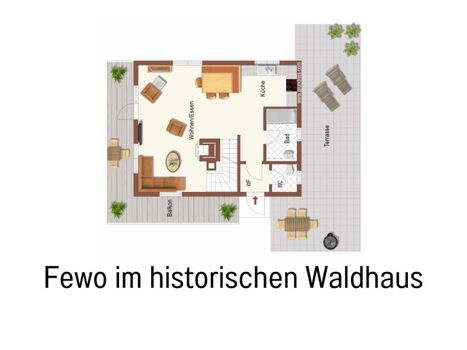 Platz bietet die Fewo im Waldhaus für bis zu 5 Personen in 2 Schlafzimmern und im Wohnbereich.