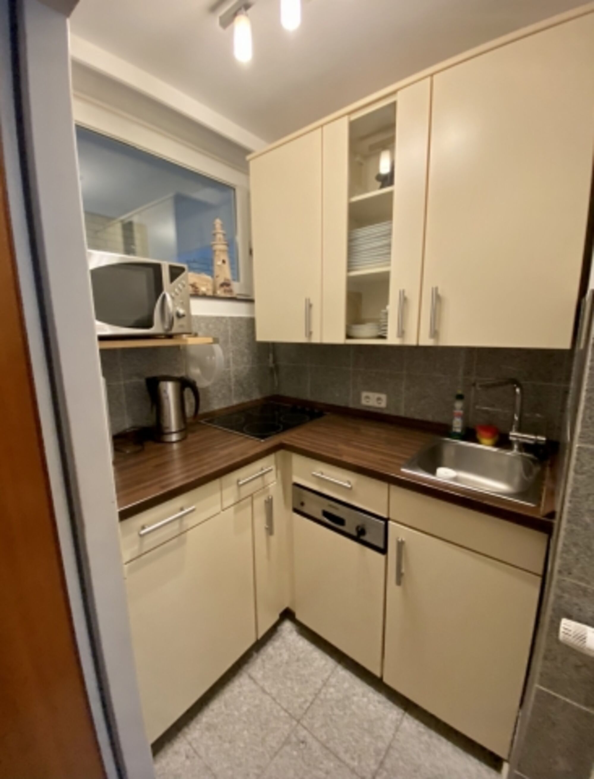 Cerankochfeld, Kühlschrank mit Gefrierfach, Korkenzieher / Flaschenöffner, Geschirrhandtücher