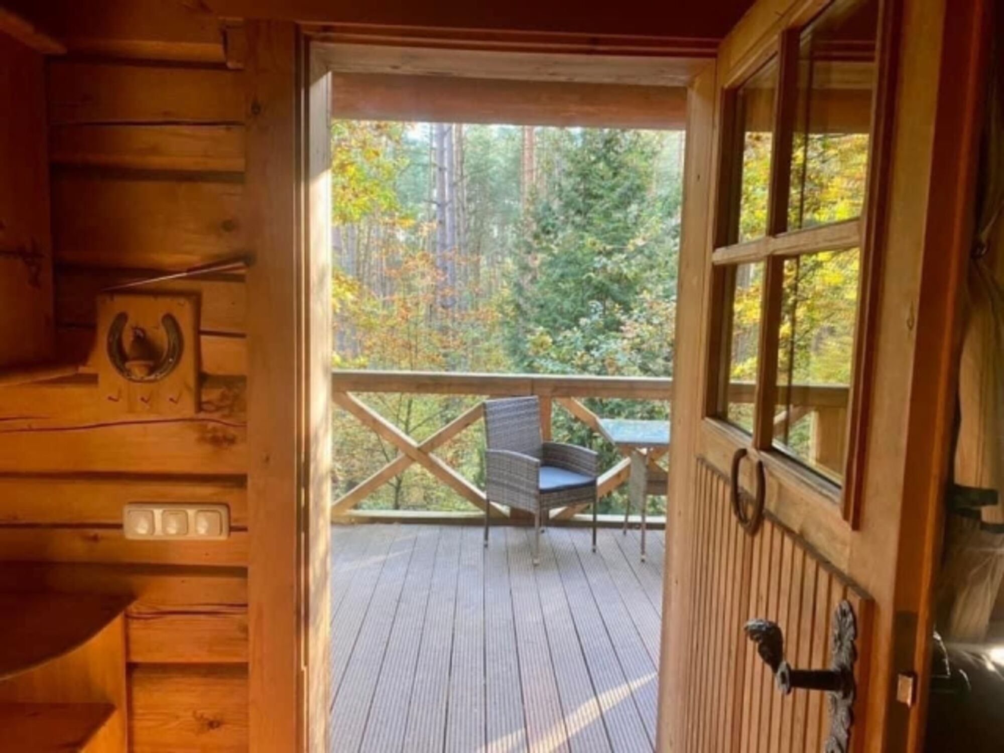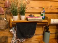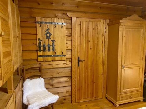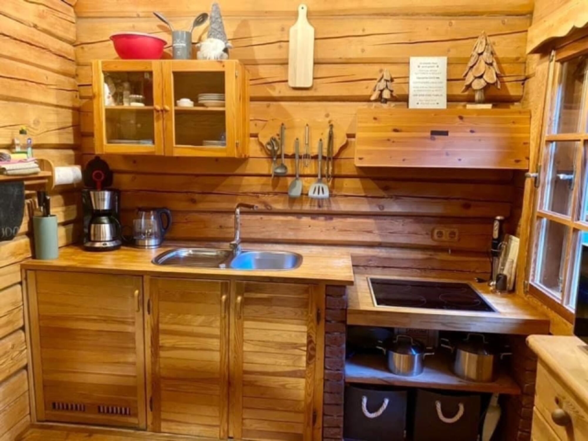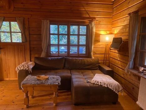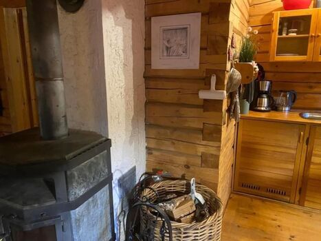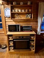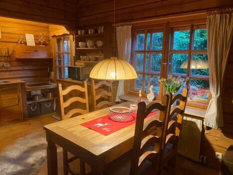 Man kommt in unser Blockhäusle und befindet sich im offenen Wohn-und Küchenbereich.