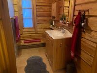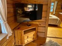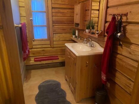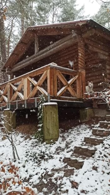 im „BLOCKHÄUSLE“ für bis zu 2-Max. 3 Personen und Fellnasen, 1.80m hoch eingezäunt, Alleinlage, Hundebuggys, Hunde kostenfrei , große Terasse