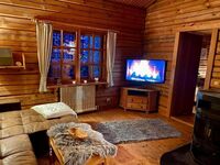 Im Wohnzimmer mit einer ausziehbaren Schlafcouch zum Kuscheln und einer gemütlichen großen Essecke, TV u.v.m..und Kamin lässt es sich gemütlich urlauben.