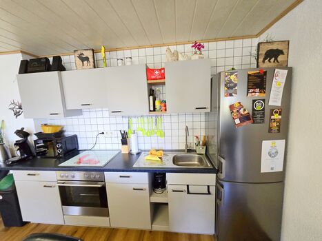 Cerankochfeld, Dunstabzugshaube, Kühlschrank mit Gefrierfach, Gefrierschrank, Senseo-Kaffeeautomat, Korkenzieher / Flaschenöffner, Gewürze (Salz, Pfeffer, Zucker), Öl / Essig, Geschirrhandtücher, Mülltüten, Essplatz in der Küche, TV in der Küche