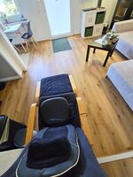 Die Wohnung besticht durch ihre helle, gemütliche Atmosphäre und den direkten Blick ins Grüne. Das Herzstück ist die große, private Terrasse mit angrenzendem, eingezäuntem Gartenbereich, in dem sich Ihre Fellnase frei und sicher bewegen kann – ideal zum Schnüffeln, Spielen oder entspannten Sonnenbaden. Während Ihr Hund entspannt die Umgebung erkundet, können Sie auf den bequemen Gartenmöbeln die frische Luft genießen und den Blick in die Natur schweifen lassen.