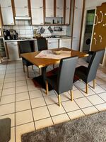 4-Platten Herd, Dunstabzugshaube, Kühlschrank mit Gefrierfach, Gefrierschrank, Mixer, Korkenzieher / Flaschenöffner, Mülltüten, Essplatz in der Küche