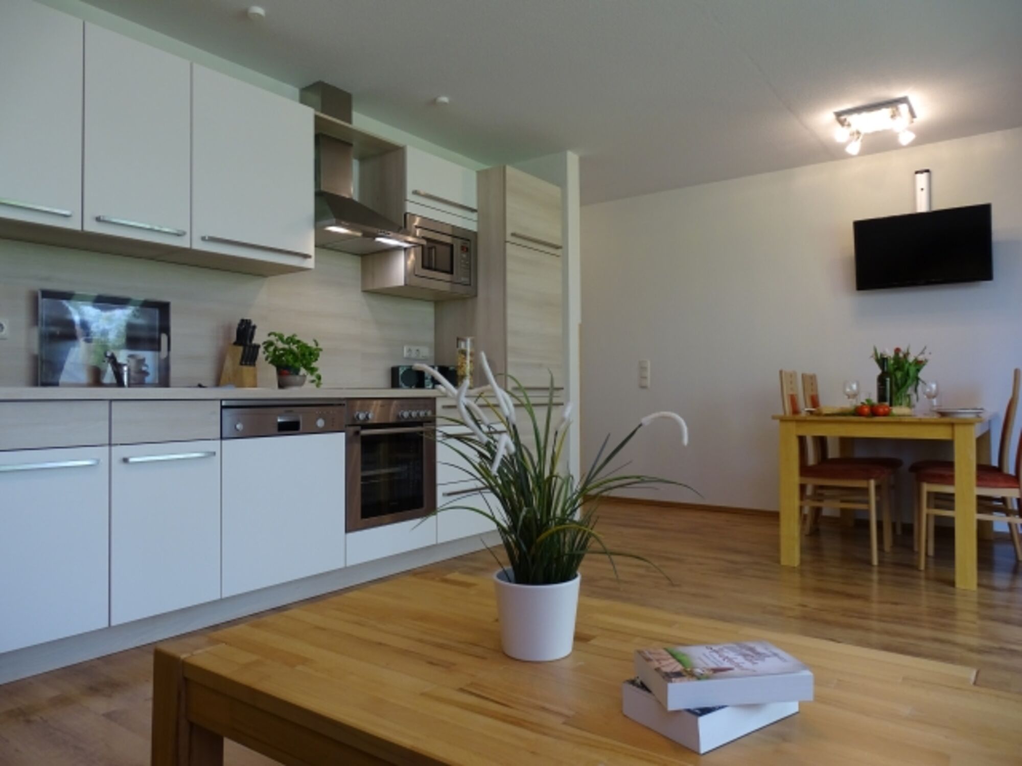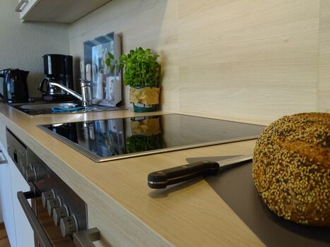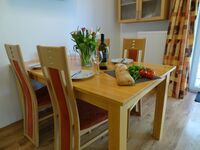 Cerankochfeld, Dunstabzugshaube, Kühlschrank mit Gefrierfach, Korkenzieher / Flaschenöffner, Essplatz in der Küche, TV in der Küche