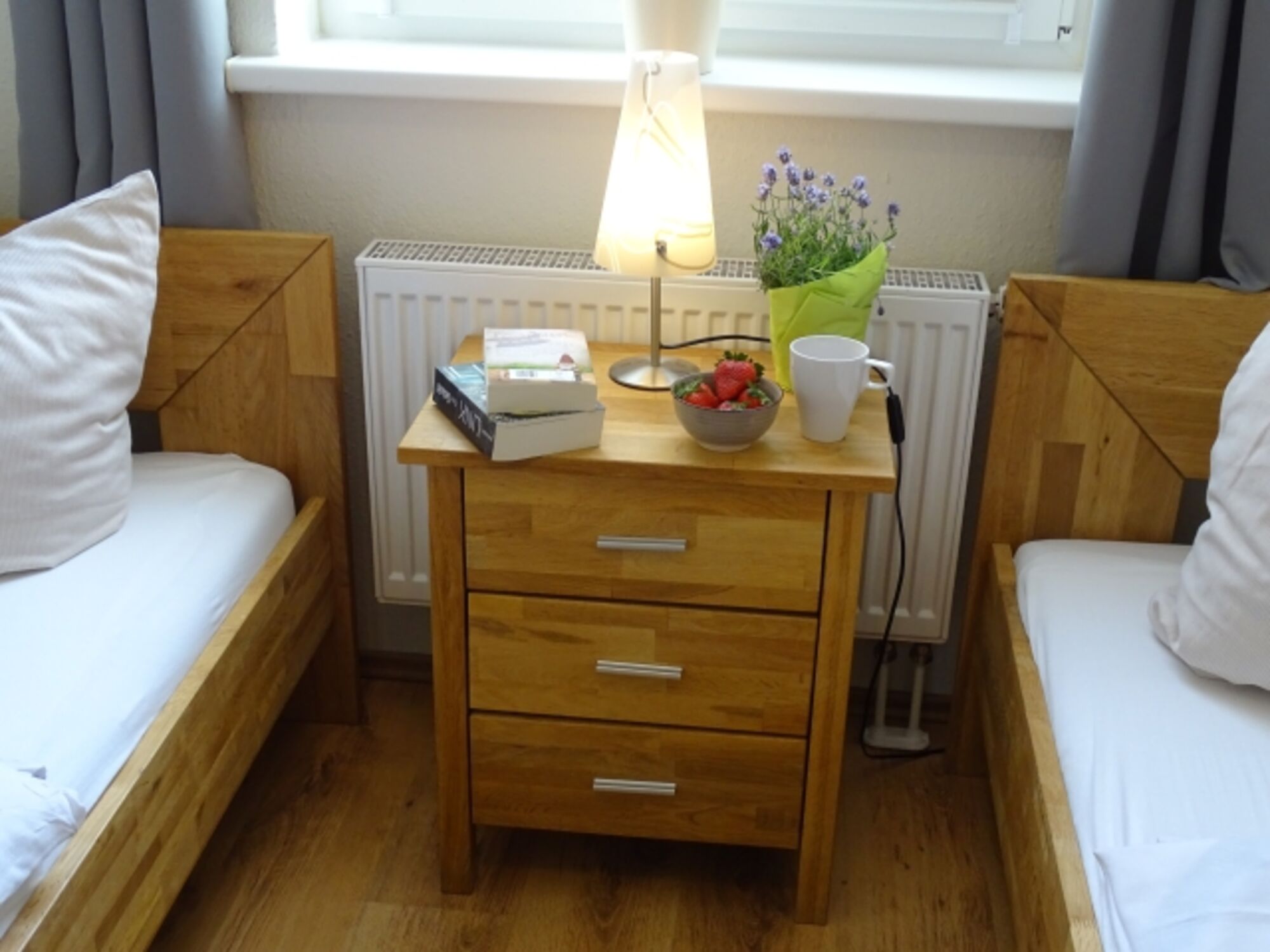Unsere schöne und geräumige Ferienwohnung (ca.64m²) in ruhiger, strandnaher Lage ist ausgestattet für 4 Personen und 1 Kleistkind. Sie verfügt über 2 separate Schlafzimmer. Sie bietet ein modernes Wohnzimmer mit Couch- und Essecke, SAT-Flachbild-TV und integrierte offene Küchenzeile. Die Einbauküche ist mit Geschirrspüler, Backofen, Ceranfeld, Mikrowelle, Kaffeemaschine, Toaster uvm. ausgestattet... Die Schlafzimmer (einmal mit Doppelbett und eines mit getrennt stehenden Einzelbetten) sind gemütlich eingerichtet. Das Duschbad ist hell und geräumig. Genießen Sie Ihre Urlaubsstunden auch auf der sonnigen Terrasse direkt am Objekt.