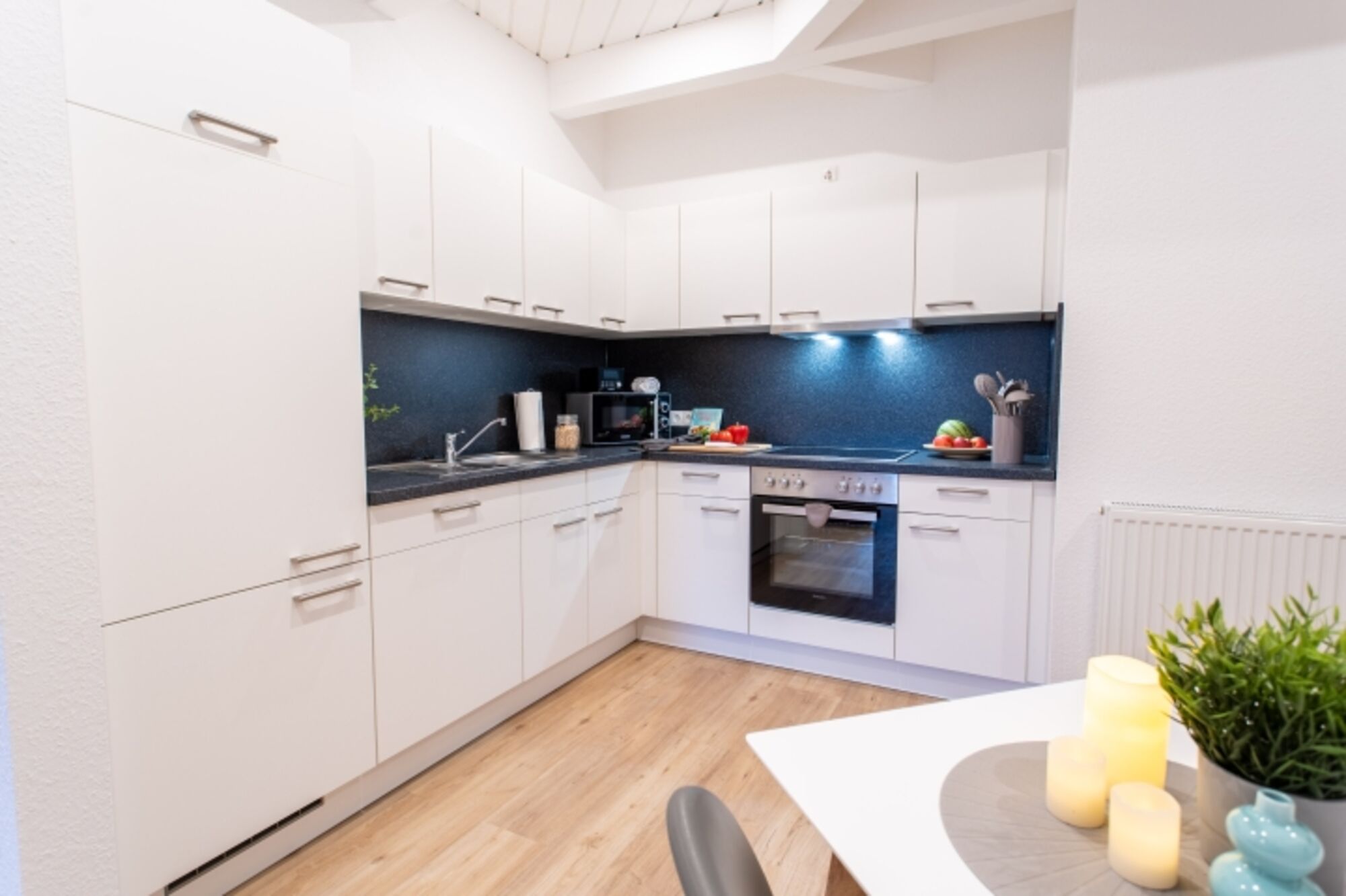 Die Apartments sind komplett neu eingerichtet, bieten super bequeme Boxspringbetten und modernen Badezimmer. Die offenen Küchen sind voll ausgestattet und fast alle Apartments haben auch einen eingezäunten Platz im Freien, um bei gutem Wetter die Sonne zu genießen. Natürlich gibt es auch einen eigenen Parkplatz und kostenloses WLAN über eine Hotspot-Lösung. Handtücher und Bettwäsche sind vorhanden.
