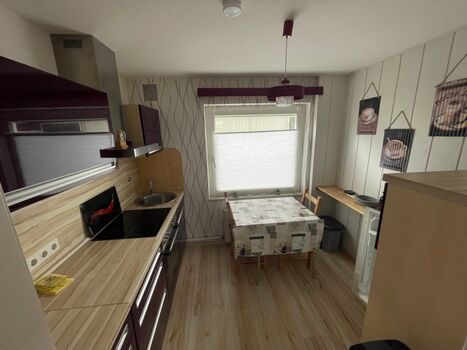 4-Platten Herd, Dunstabzugshaube, Kühlschrank mit Gefrierfach, Korkenzieher / Flaschenöffner, Essplatz in der Küche