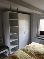 Pax Schrank mit Extra Regal Doppelbett 1,80 x 2,00m, Boxspringbett, Kommode, Leselampe am Bett