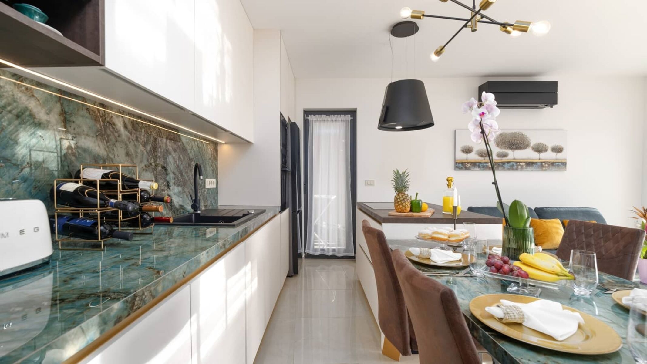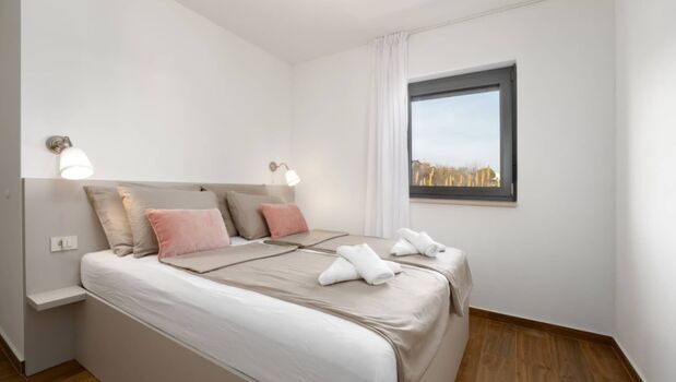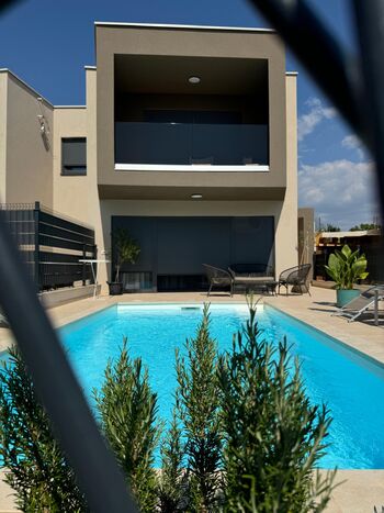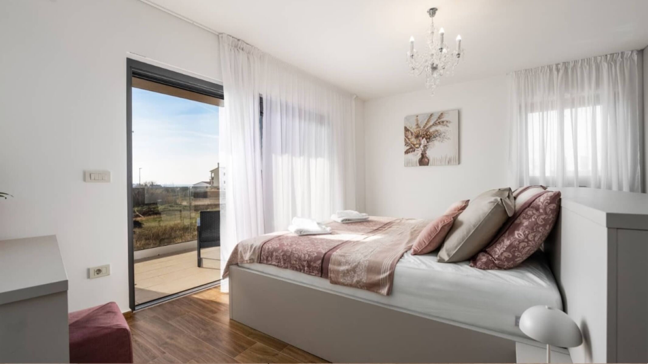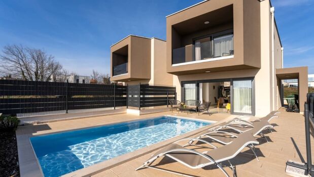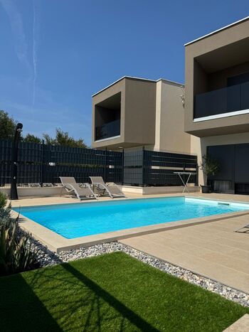 Die Villa Esmeralda II ist ein 2023 neugebautes, modernes Ferienhaus mit Pool in Novigrad Istrien. Der Balkon bietet einen wunderschönen Blick auf das Meer und den atemberaubenden Sonnenuntergang von Novigrad. Das Meer und die Haven der Innenstadt von Novigrad sind Fußläufig zu erreichen. Die Entfernung zum Meer sind nur ca. 700 Meter. Die Villa ist perfekt für Zwei- und Vierbeiner, für Paare und Familien bis zu 4 Personen (+ Ausziehcouch /6 Personen auf Anfrage). Das komplett umzäunte aus bietet alles für einen tollen Urlaub. Und Hunde können ohne Autostress rund um das Haus sich austoben. Das Haus wird direkt von der Eigentümerin vermietet und auch betreut. Somit haben Sie für einen erholsamen und unbeschwerten Aufenthalt immer einen Ansprechpartner. Die Villa ist ein Teil eines Doppelhauses. Direkt daneben steht exakt das gleiche Haus der selben Eigentümerin. Somit ist es auch möglich beide Häuser zu mieten.
