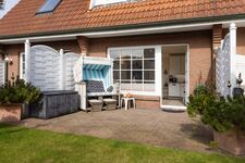 Helles Appartement mit kleiner Terrasse und Strandkorb im Erdgeschoss