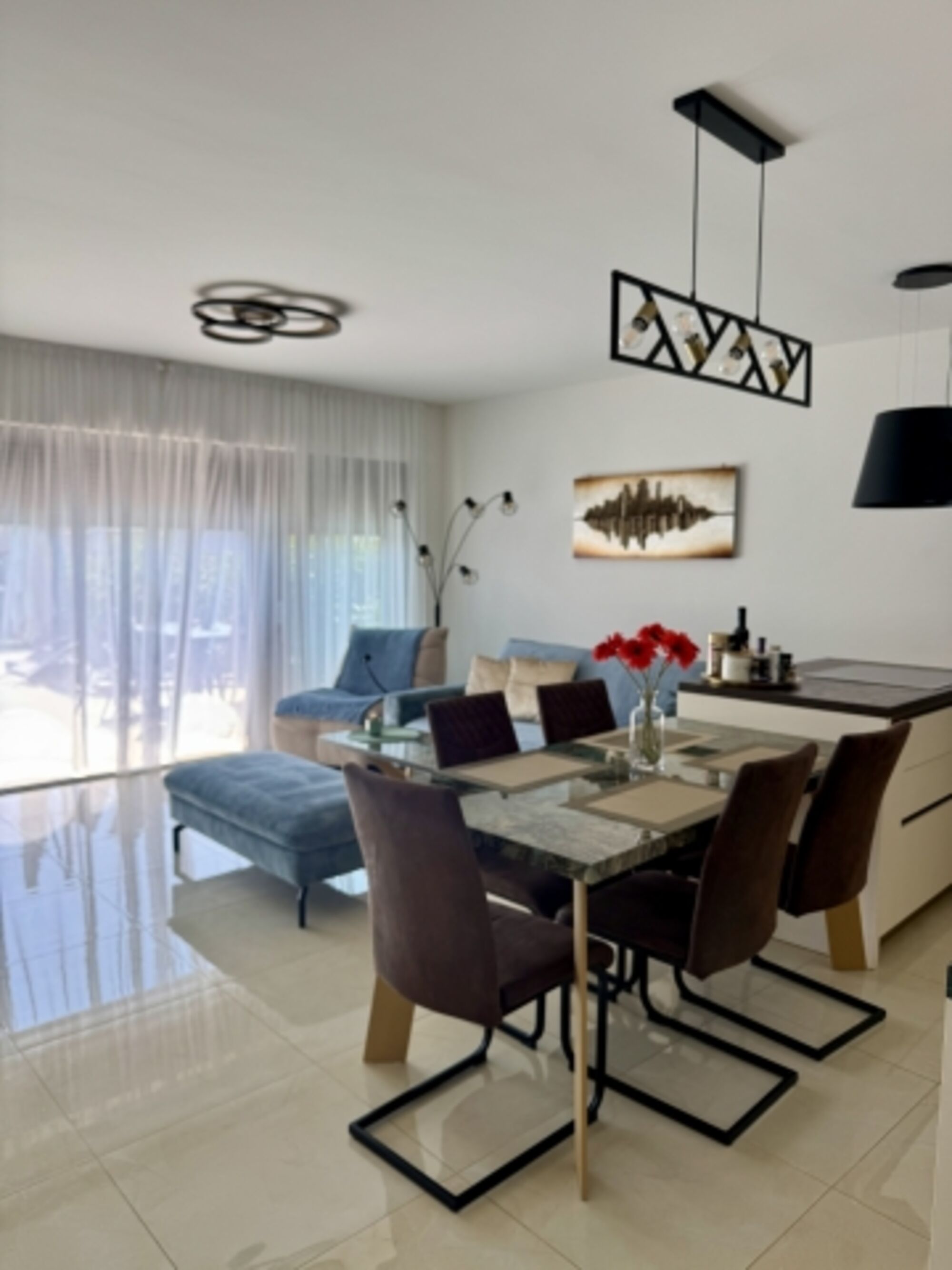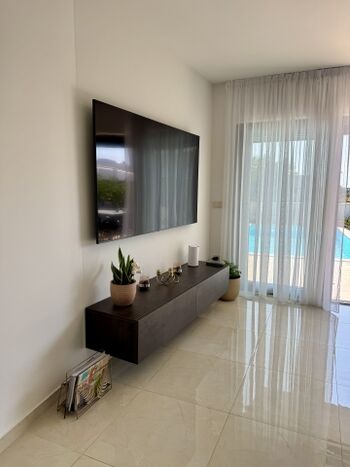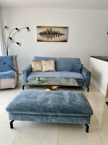 TV, SMART-TV, HDTV Flachbildschirm, 2er-Sofa, Sessel, Fliegengitter