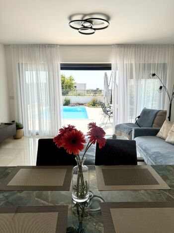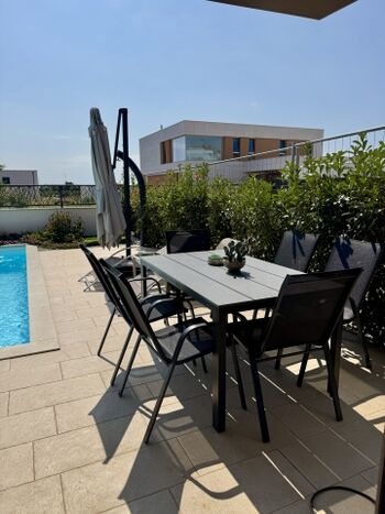 Die Villa Esmeralda ist ein 2023 neugebautes Ferienhaus mit Pool in Novigrad, im Norden von Istrien. Der Balkon bietet einen wunderschönen Blick auf den atemberaubenden Sonnenuntergang von Novigrad. Das Haus ist perfekt für Paare, Familien bis zu 4 Personen. Es gibt aber noch ein Zusatzzimmer mit einer Ausziehcouch. Somit könnten auch 6 Personen buchen. Die Villa ist ein Teil eines Doppelhauses. Das exakt gleiche Haus steht direkt daneben und gehört der gleichen Eigentümerin. Somit können beide Häuser natürlich gemeinsam gemietet werden.