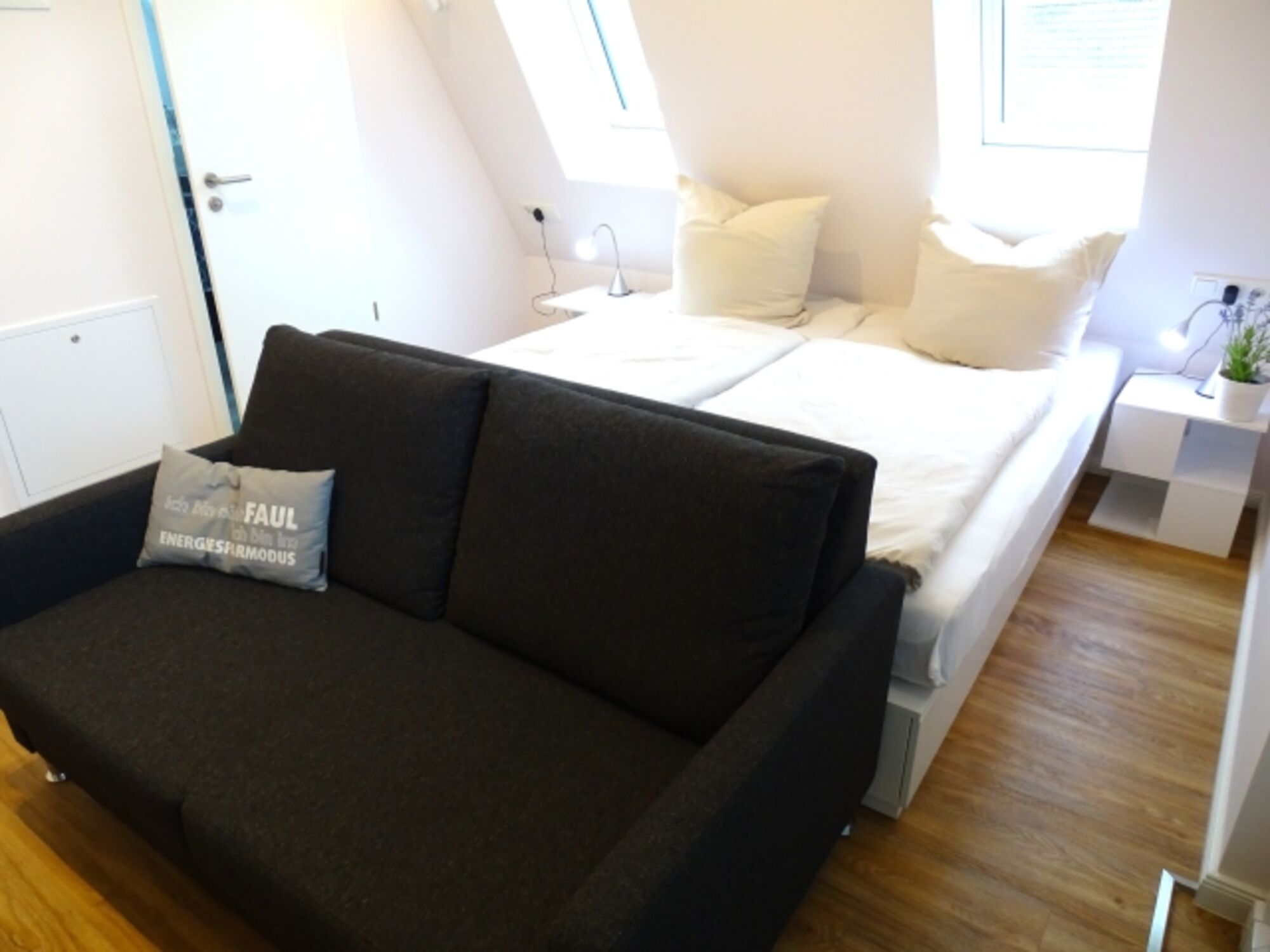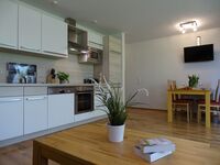Die modern gehaltenen Innenräume wurden liebevoll gestaltet. Bei der Einrichtung wurde großer Wert auf Komfort gelegt. Farben und Materialien sind harmonisch aufeinander abgestimmt Im Objekt gibt es insgesamt 6 Appartements. Dieses Appartement empfängt Sie mit einem offenen Wohn / Schlaf- und Küchenbereich und hält ein modernes Bad für Sie bereit. Auf dem Balkon stehen Gartenmöbel für Sie bereit.