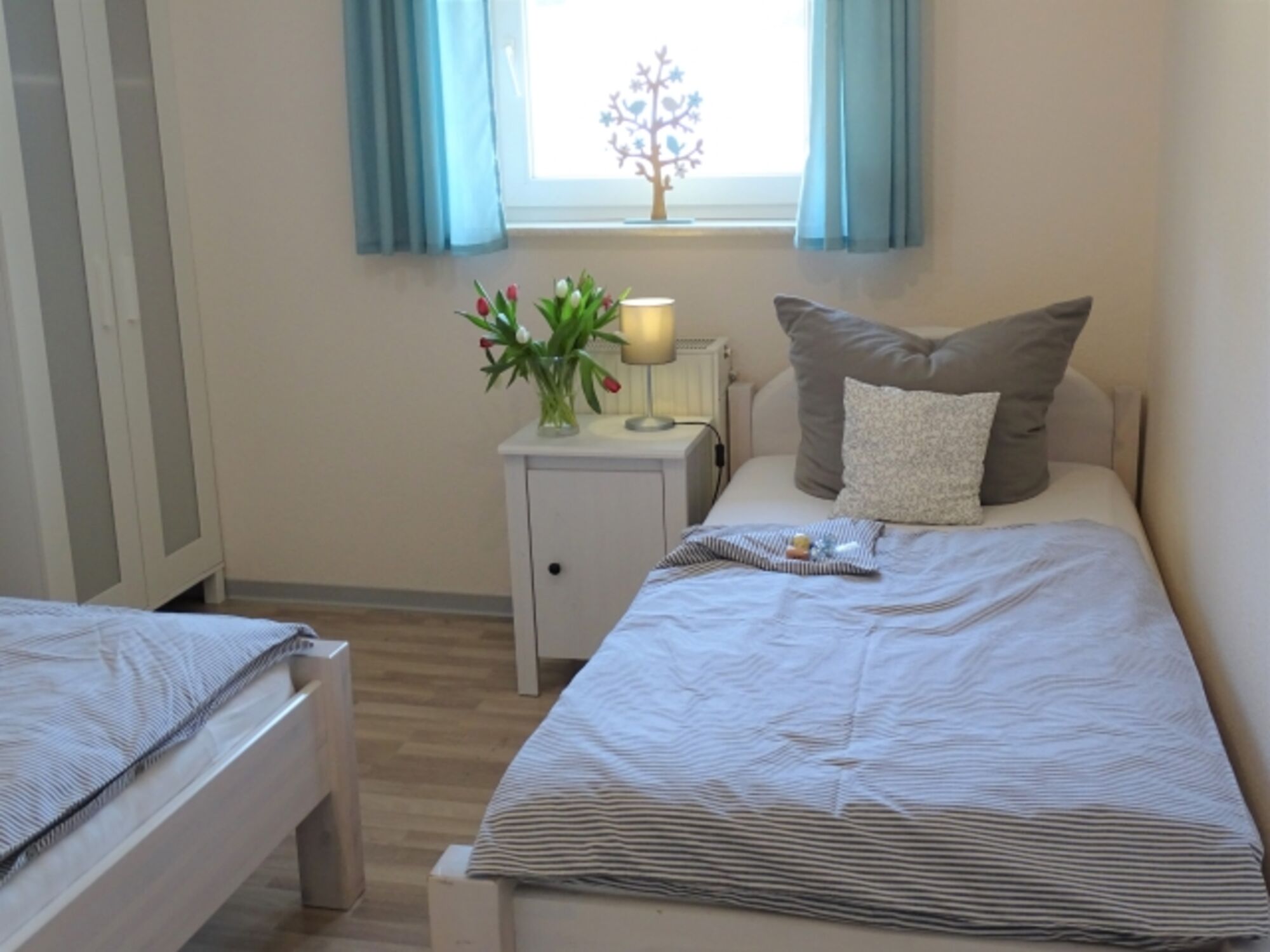 2 Einzelbetten 90 x 200 Einzelbett, Leselampe am Bett