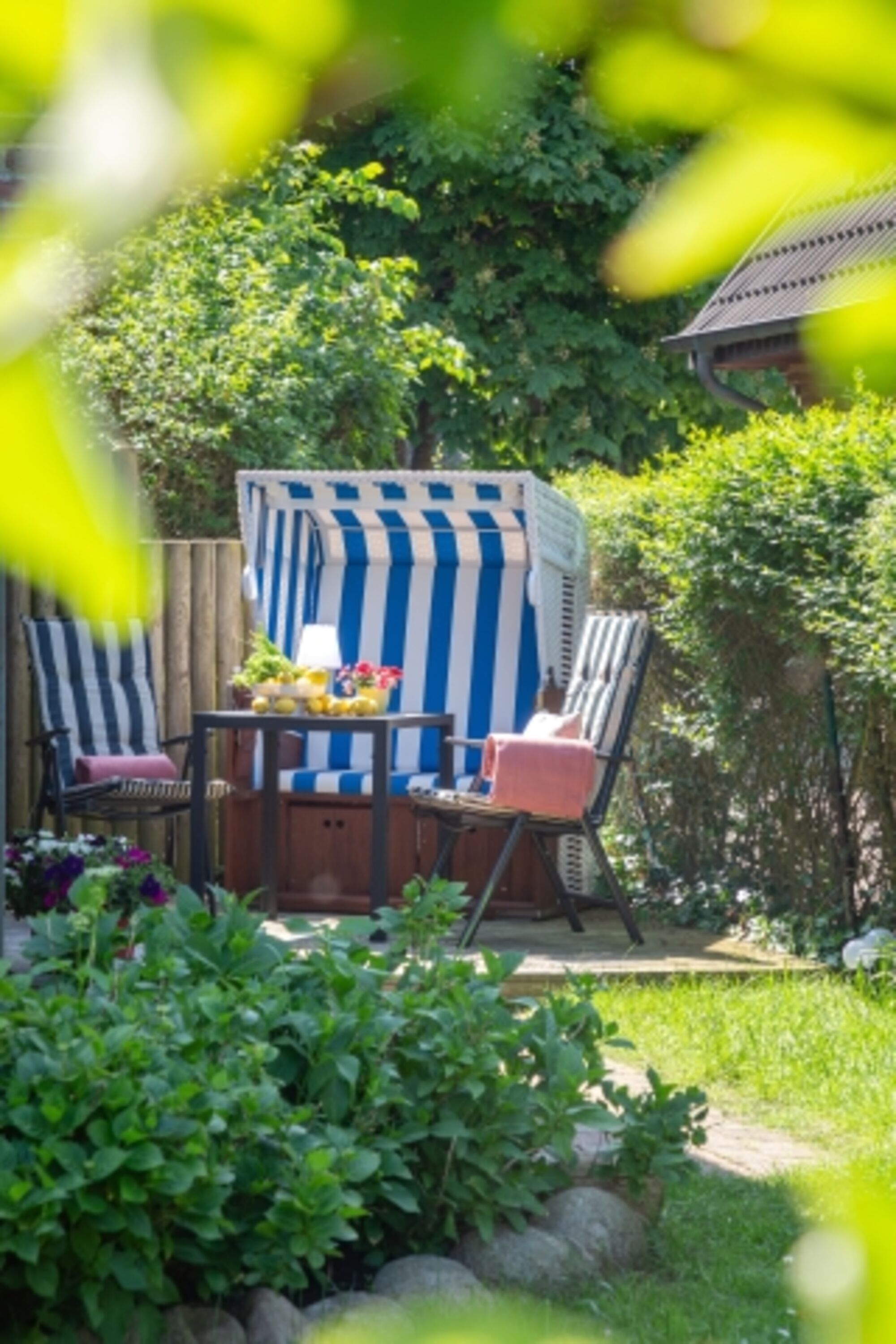 Entspannen Sie sich im Wohnbereich vor dem Smart-TV oder nutzen Sie die gemütliche Terrasse im großen blickdicht eingewachsenen Garten, der mit einem Strandkorb, Gartenmöbeln und Sonnenliegen ausgestattet ist.