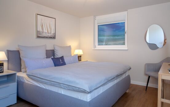 Doppelbett 1,80 x 2,00m, Spiegel, Leselampe am Bett