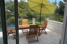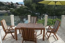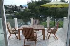 Die Terrasse bieten Ihnen einen herrlichen Meeresblick, Gelenkarm-Markise, Gartenmöbeln und einen Sonnenschirm.