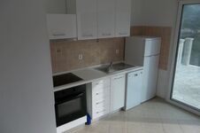 Cerankochfeld, Dunstabzugshaube, Kühlschrank mit Gefrierfach, Korkenzieher / Flaschenöffner, Geschirrhandtücher, Mülltüten, Essplatz in der Küche, TV in der Küche