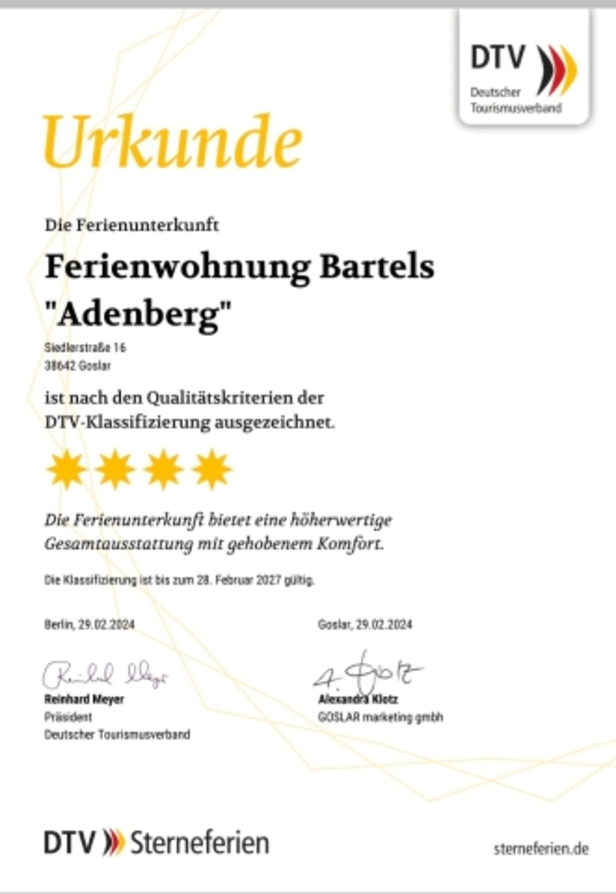 Ferienwohnungen Bartels in Goslar Sterne nach DTV: F