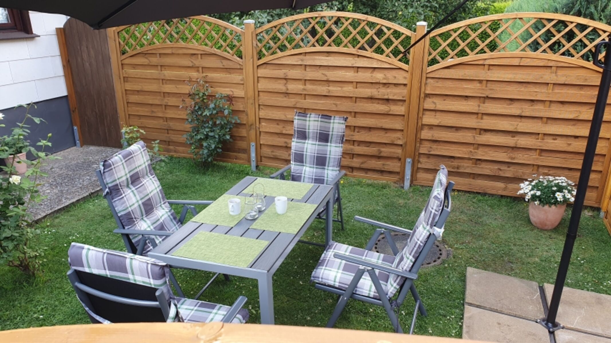 Der zugehörige Gartenbereich ist komplett eingezäunt – perfekt zum Entspannen