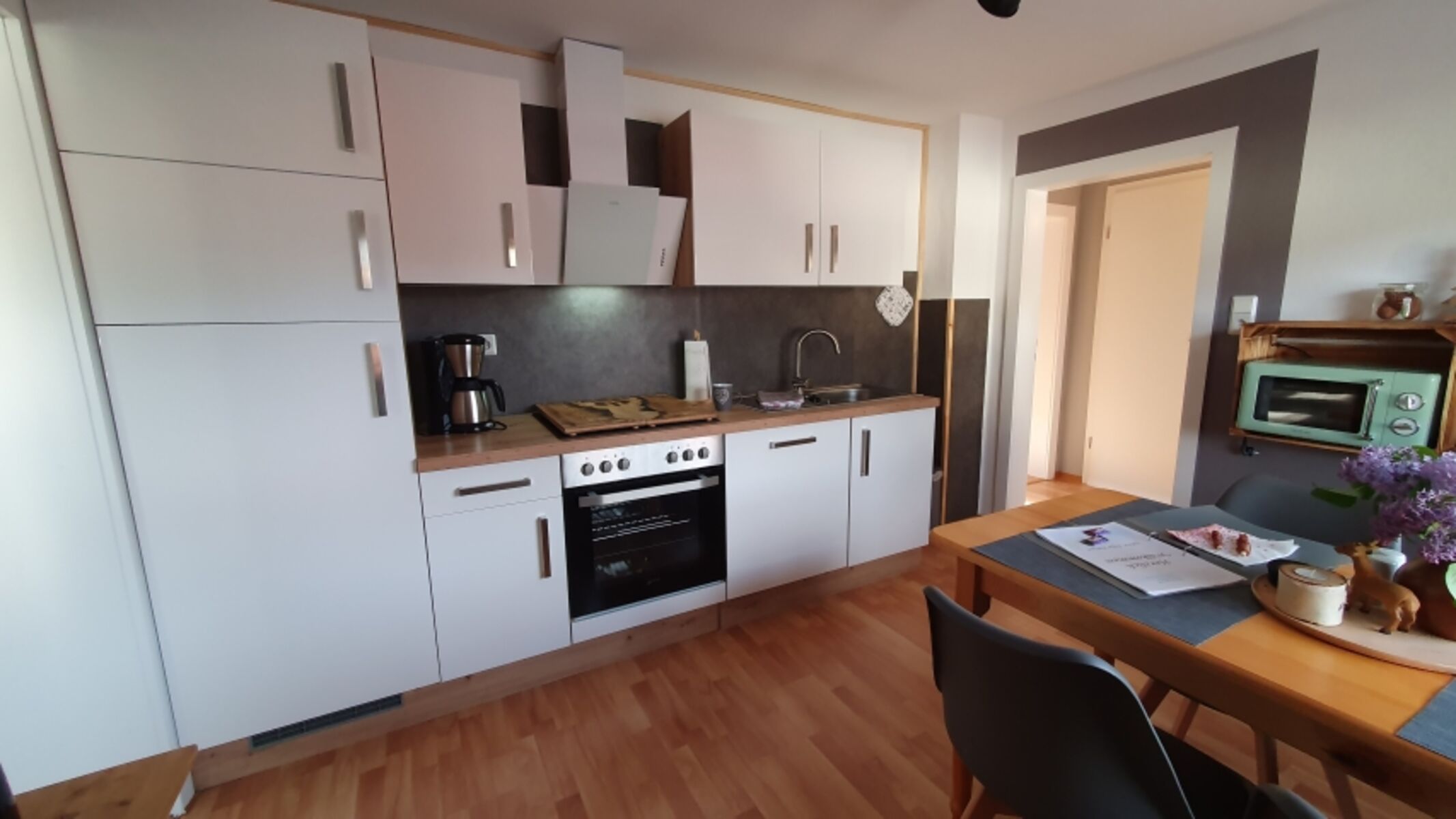 Voll ausgestattete Küche mit Esstisch für 4 Personen