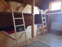 Das Tennenlager! Etagenbetten wie auf einer Almütte. Je Kojie (6x) 140x200cm. Als Highlight das HEUBETT, hier kannst du mit Schlafsack im duftendem Heu, ins Reich der Träume reisen. Doppelbett 1,40 x 2,00m