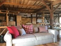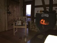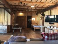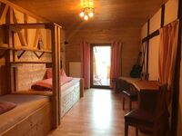 Vom großen Wohn-Essbereich, in dem auch "Bruno" der geniale Holzofen gute Dienste tut, kommt man in das erste Schlafzimmer mit einem Himmelbett und in ein weiteres Zimmer mit zwei Einzelbetten und das DuschBad.