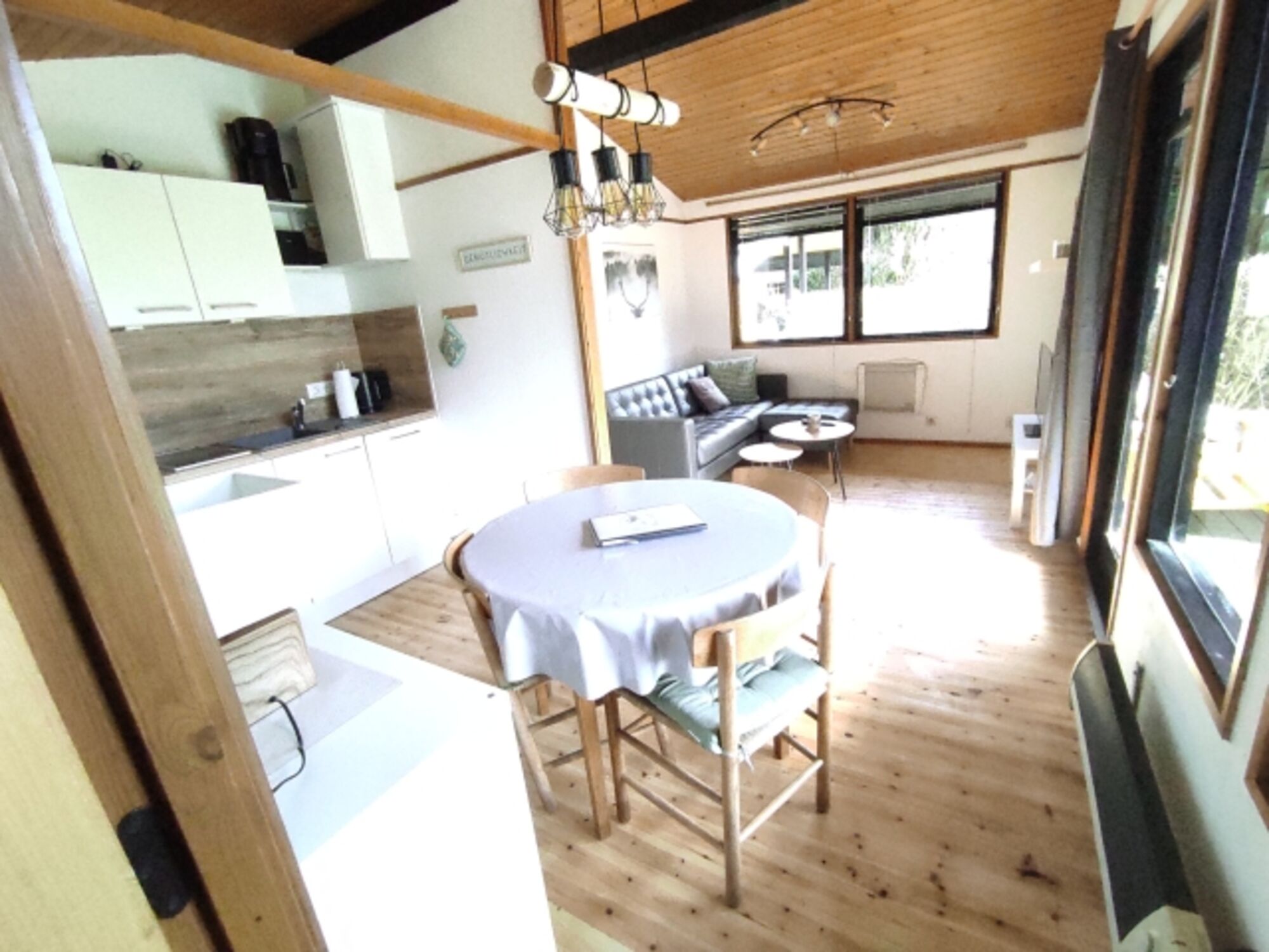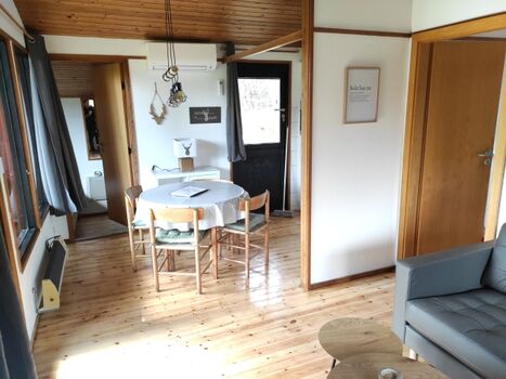 Unsere "Wald Chalets" sind neu möbliert worden in 2023/2024 und sind im "Wald Stil" eingerichtet.. Desweiteren gibt es ein Schlafzimmer mit gemütlichen Doppelbetten (1,6x2,0m Liegefläche) und ein Schlafzimmer mit Doppelstockbett, ein gemütliches Wohnzimmer mit Küche und ein schnuckeliges Badezimmer mit Dusche runden Ihr Reich für Ihren Urlaub ab. Jedes Haus hat eine eigene Terrasse und Terrassenmöbel. Ihre Hund können Sie an der Leine an der Terrasse anbinden . Eine Klimaanlage schafft wohlig warme Temperaturen im Winter und kalte Temperaturen im Sommer.