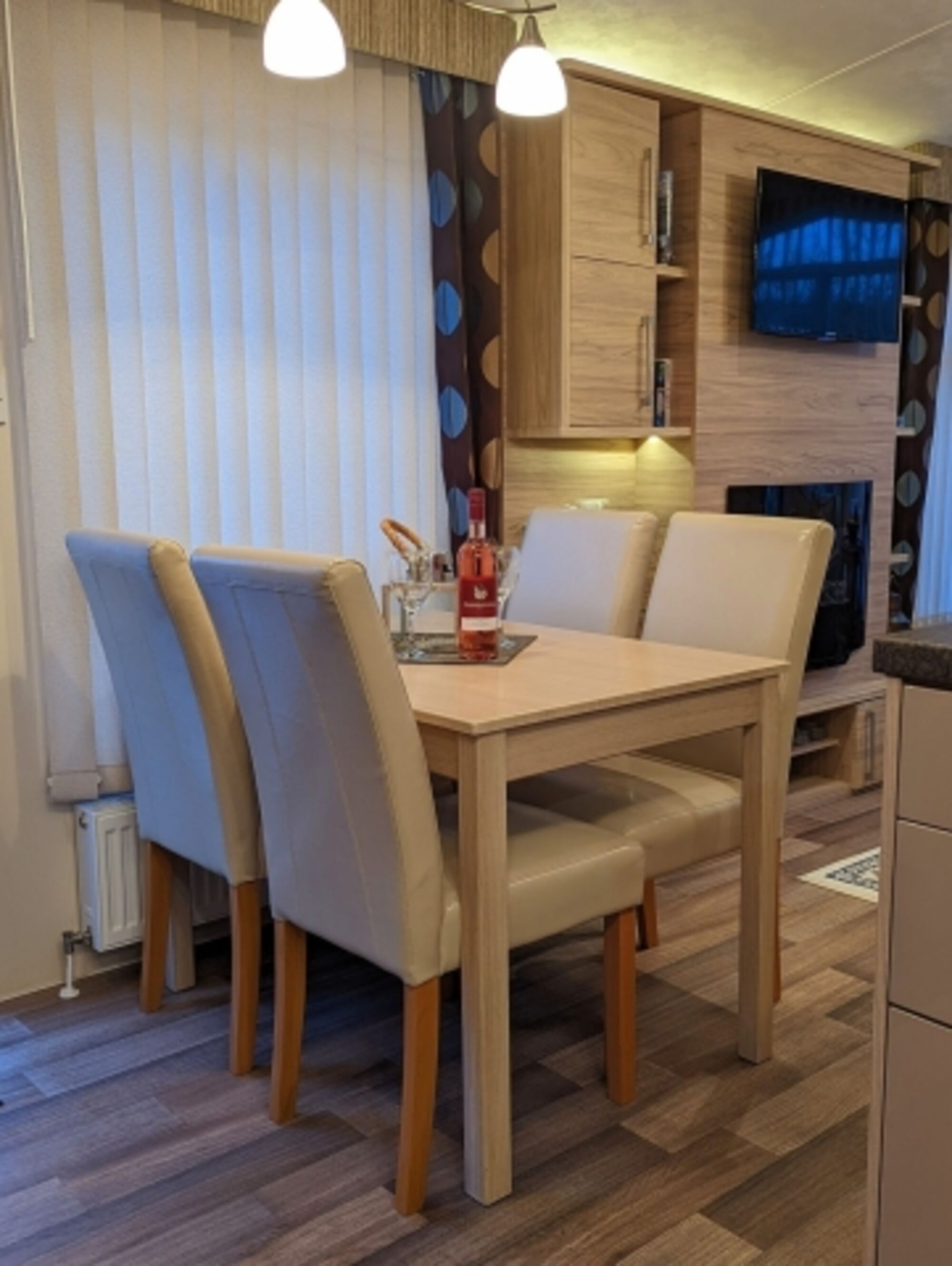4-Platten Herd, Gasofen / Gasherd, Dunstabzugshaube, Gefrierschrank, Senseo-Kaffeeautomat, Korkenzieher / Flaschenöffner, Essplatz in der Küche, TV in der Küche