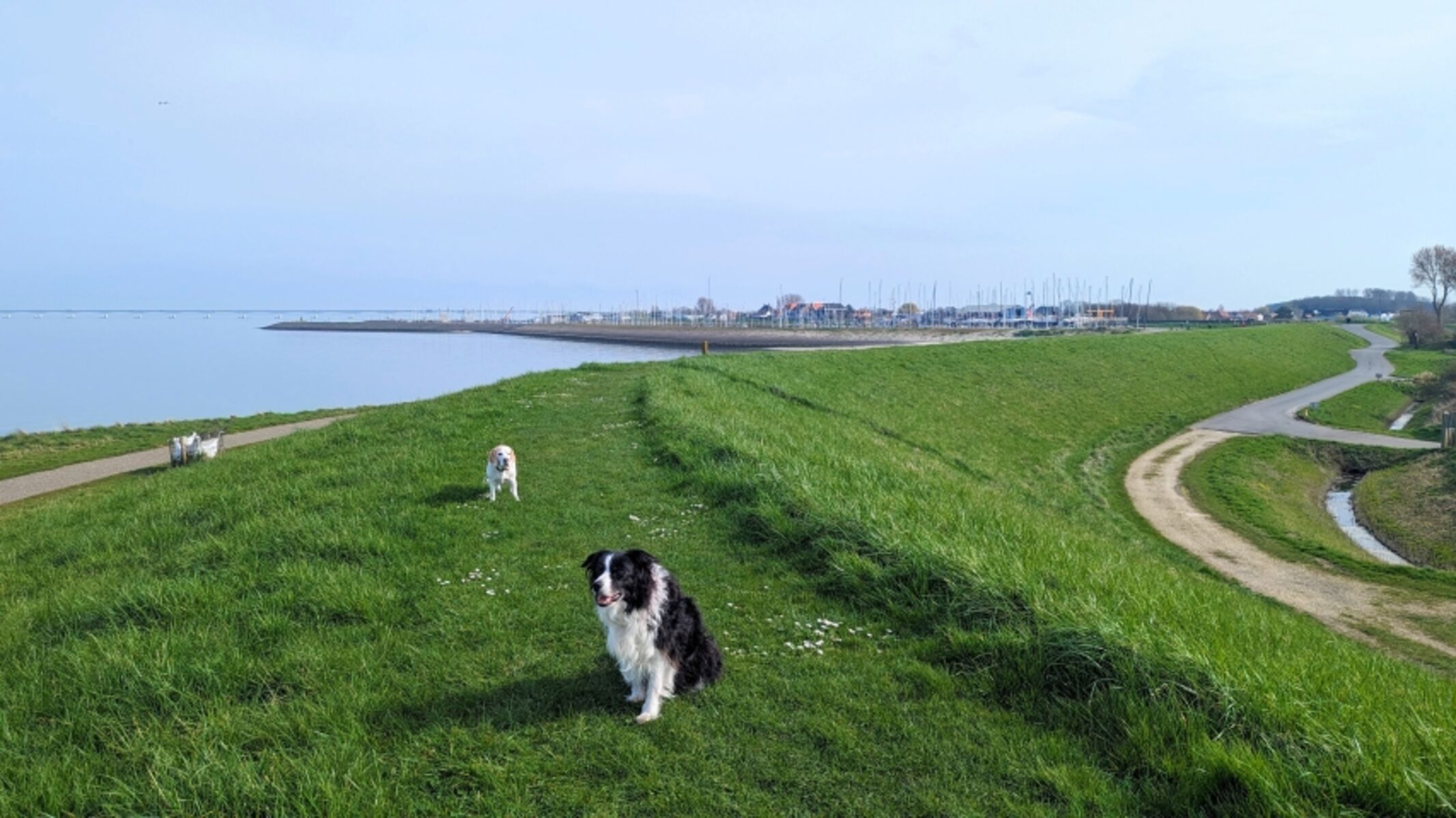 Dort kann man kilometerlange Spaziergänge am Wasser entlang machen und die Hunde dürfen frei laufen und natürlich auch ins Wasser. Oder man läuft in 10 Minuten ins tolle Städtchen Colijnsplaat, mit schönem Hafen, gemütlichen Cafés und Restaurants und einem Supermarkt.