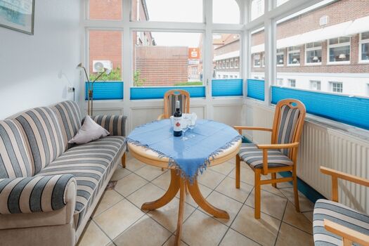 Wer einmal in dieser 60 qm-großen Wohnung Urlaub gemacht hat, der kommt immer wieder. Vor allem die urige Holzveranda lädt zum Verweilen und zum Beobachten des beschaulichen Lebens auf der Inselstraße ein und hat dadurch seinen ganz besonderen, einmaligen Reiz. Die Wohnung hat eine separate Küche. Die versteckte Sonnenterrasse, mit Blick auf unseren Garten gibt viel Raum für einen ruhigen Abend. Zwei Schlafzimmer, davon eines mit Doppelbett, das andere mit Einzel- und Etagenbett sowie ein im Dezember 2010 modernisiertes Bad mit ebenerdiger Dusche machen den Urlaub perfekt.