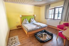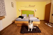 Sie dürfen bei uns ins Restaurant mit zum Frühstück oder zum Abendessen, auf die Terrasse, selbstverständlich in die Zimmer und es macht überhaupt nichts, wenn ein Hund bellt und weitere zwanzig Hunde munter einstimmen.