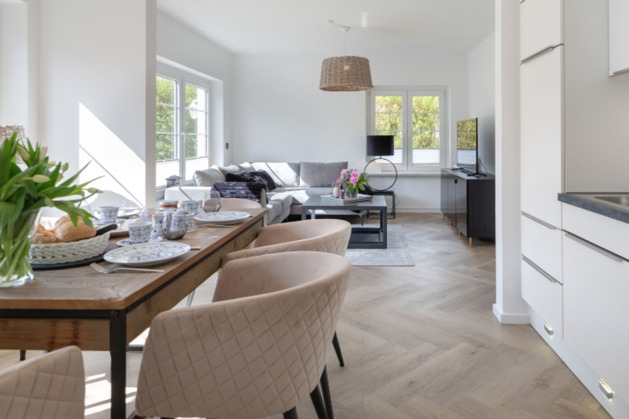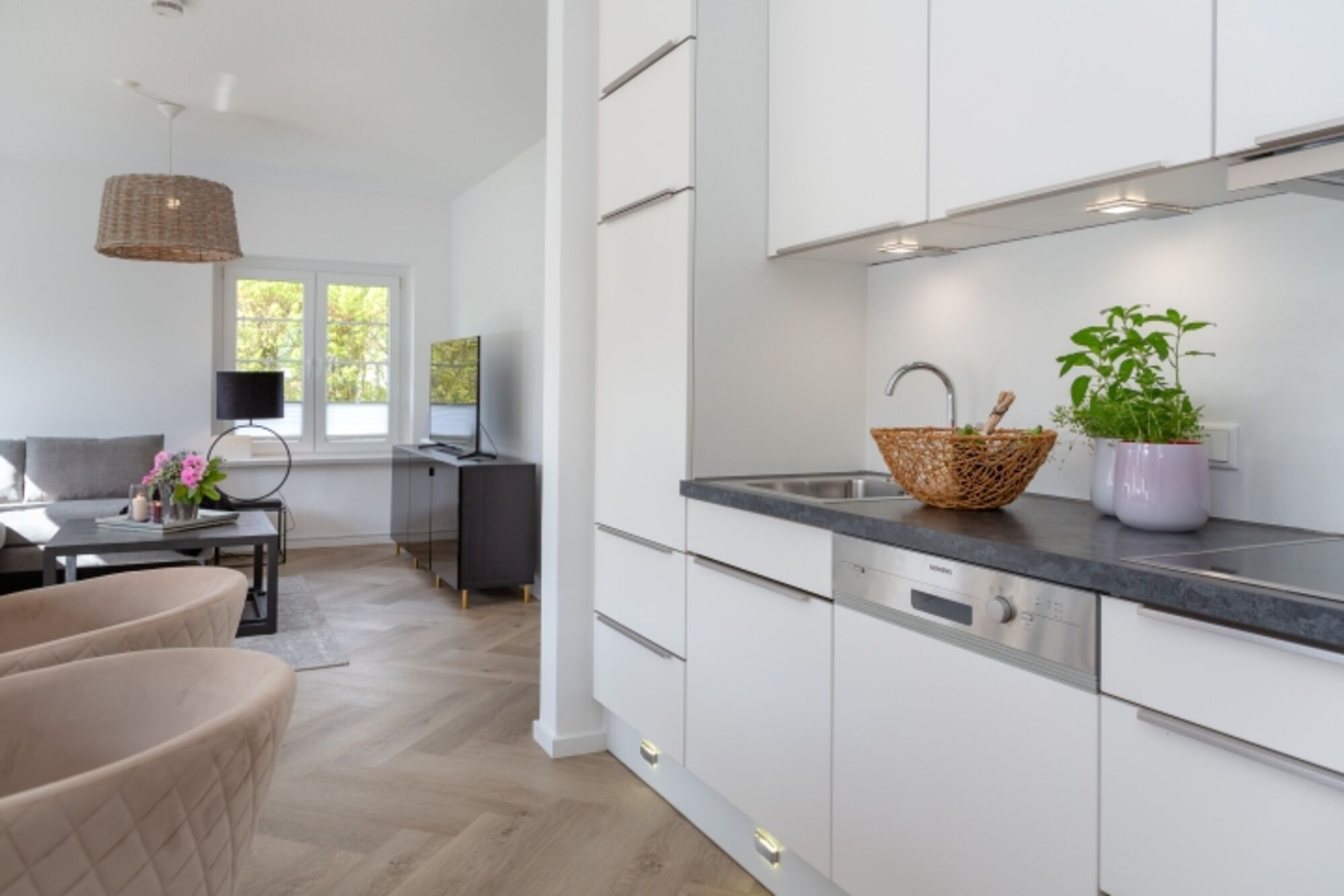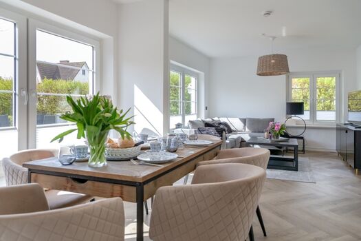 Treten Sie ein und lassen Sie sich von der stilvollen Einrichtung und dem hellen Ambiente verzaubern. Die Ferienwohnung strahlt eine gemütliche Atmosphäre aus und lädt dazu ein, sich sofort wie zu Hause zu fühlen.