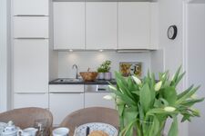 4-Platten Herd, Cerankochfeld, Kühlschrank mit Gefrierfach, Nespresso-Automat, Korkenzieher / Flaschenöffner, Gewürze (Salz, Pfeffer, Zucker), Mülltüten