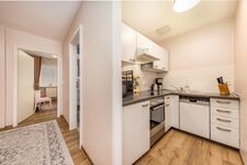 In der separaten und komplett ausgestatteten Küchenzeile finden Sie Geschirrspüler, 4-Platten-Cerankochfeld, Kühlschrank mit Gefrierfach, Backofen, Mikrowelle, Toaster, Kaffeemaschine und Wasserkocher.
