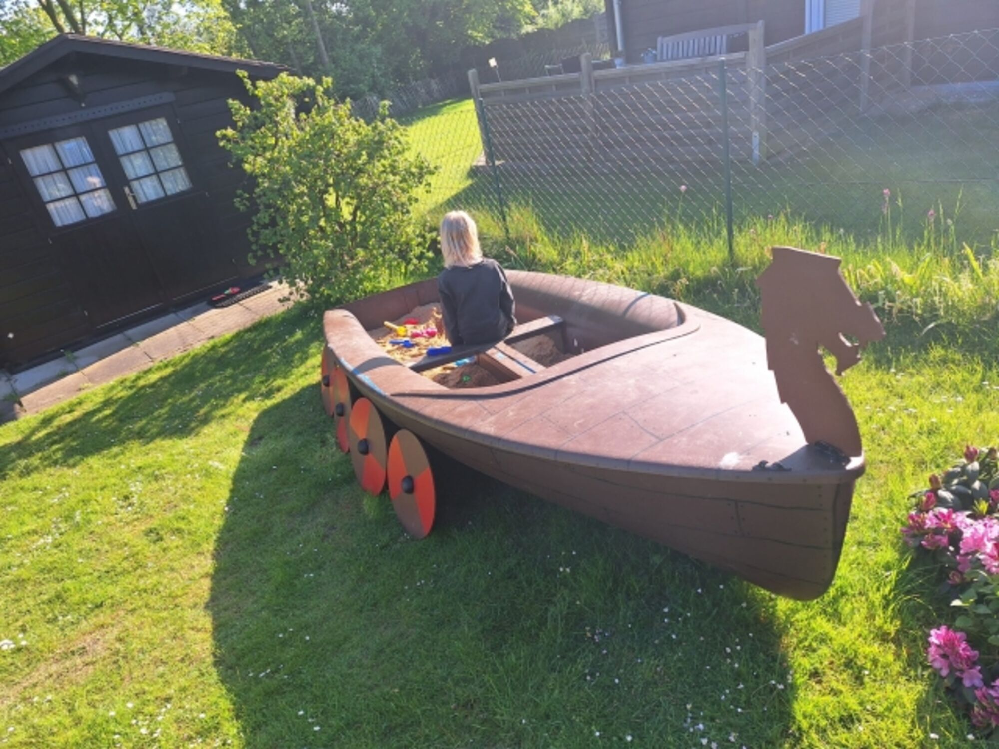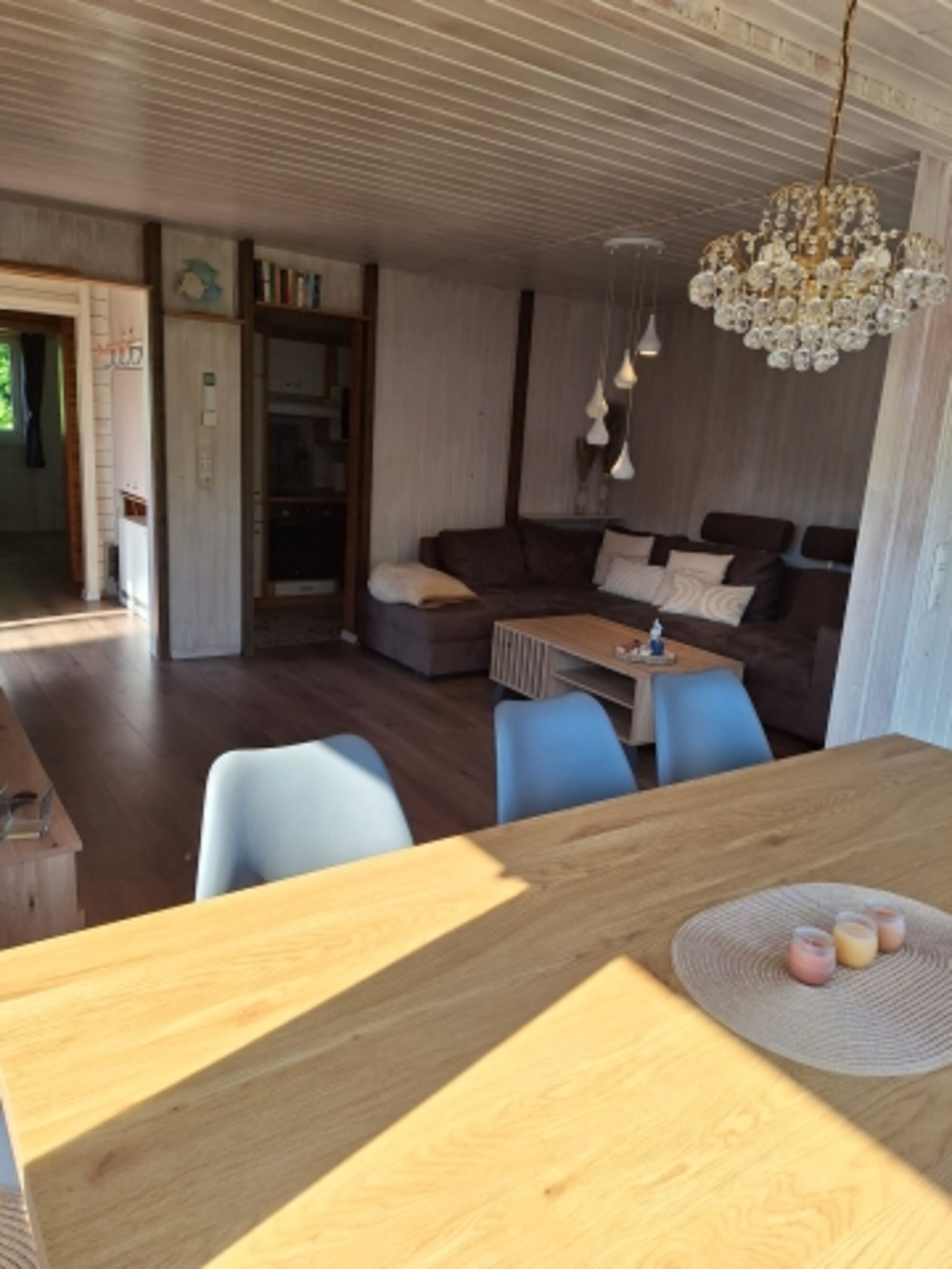 "Thors Blockhaus" verfügt über zwei Schlafzimmer, das erste Schlafzimmer ist mit einem 1,40er Boxspringbett ausgestatt und einem Schlafsessel der zu einem Bett umgebaut werden kann. Außerdem findet hier eine kleine Sitzecke für Kinder Platz. Direkt nebenan gelangen sie ins erste Badezimmer mit Dusche, WC und Waschbecken. Vom Hauptflur gelangen sie rechts ins geräumige Wohn-Esszimmer, dieses lädt zum entspannen ein. Aber auch für gemütliche Spieleabende mit der ganzen Familie bietet der Raum genügend Platz. Sie haben durch die große Fensterfront einen tollen Blick auf die Terasse und in den Garten. Vom Wohn-Esszimmer geht die Küche ab die mit allen wichtigen Dingen gut ausgestattet ist. Durch einen kleinen Flur kommen Sie dann ins geräumige Schlafzimmer mit 1,80er Bett. Hier geht direkt das zweite Badezimmer mit WC und Waschbecken ab. Der Garten ist komplett eingezäunt und das Gartentor ist abschließbar. Für die Kinder haben wir eine tolle große Sandkiste inklusive Spielzeug im Garten.