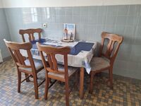 4-Platten Herd, Kühlschrank mit Gefrierfach, Korkenzieher / Flaschenöffner, Essplatz in der Küche