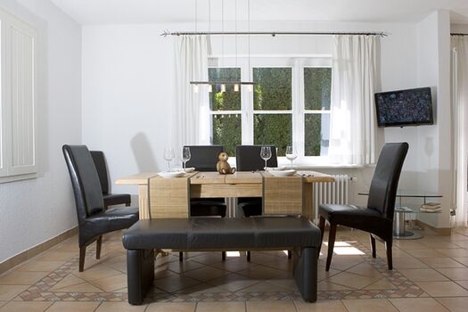 Cerankochfeld, Dunstabzugshaube, Kühlschrank mit Gefrierfach, Korkenzieher / Flaschenöffner, Geschirrhandtücher, Essplatz in der Küche