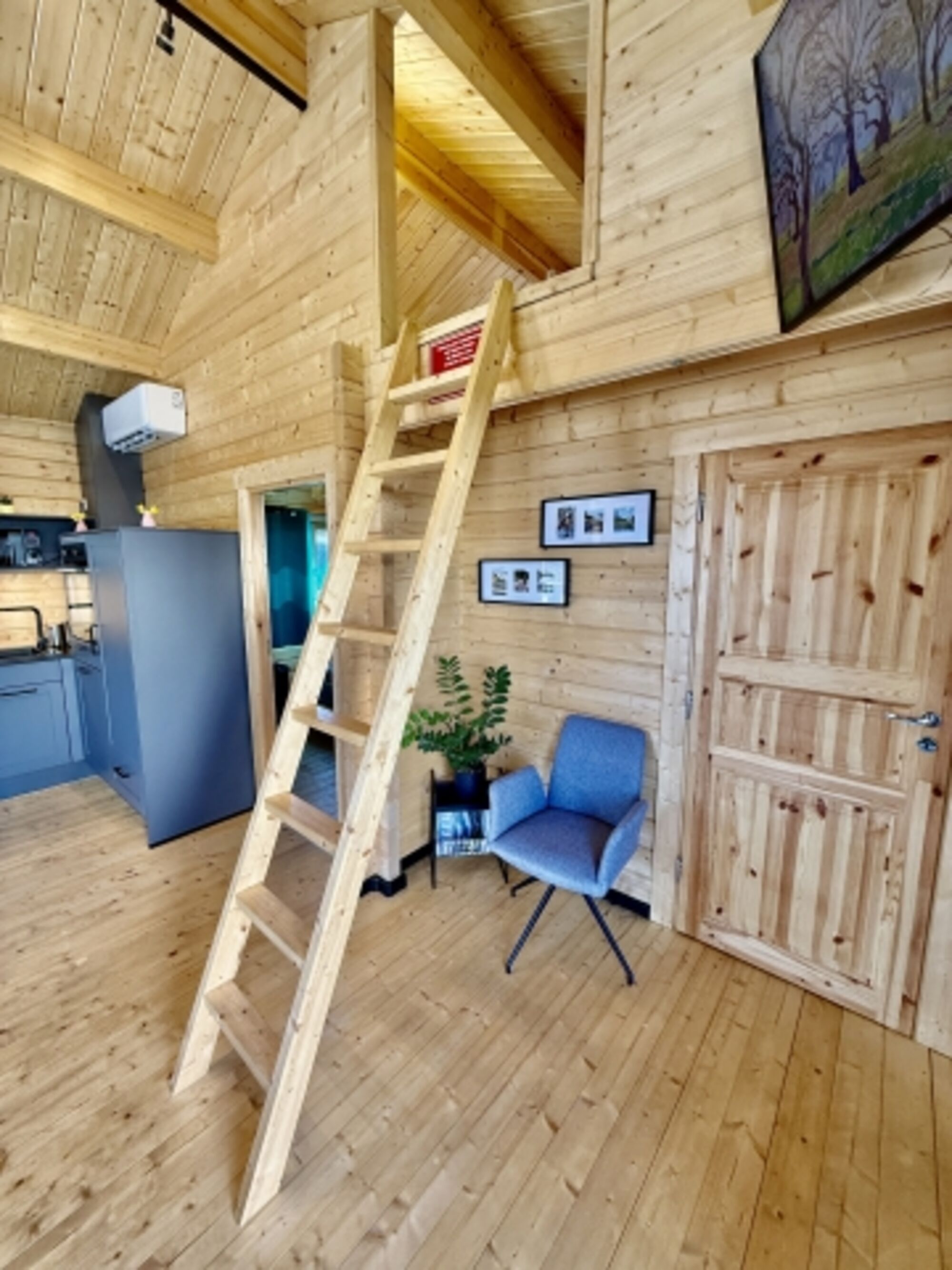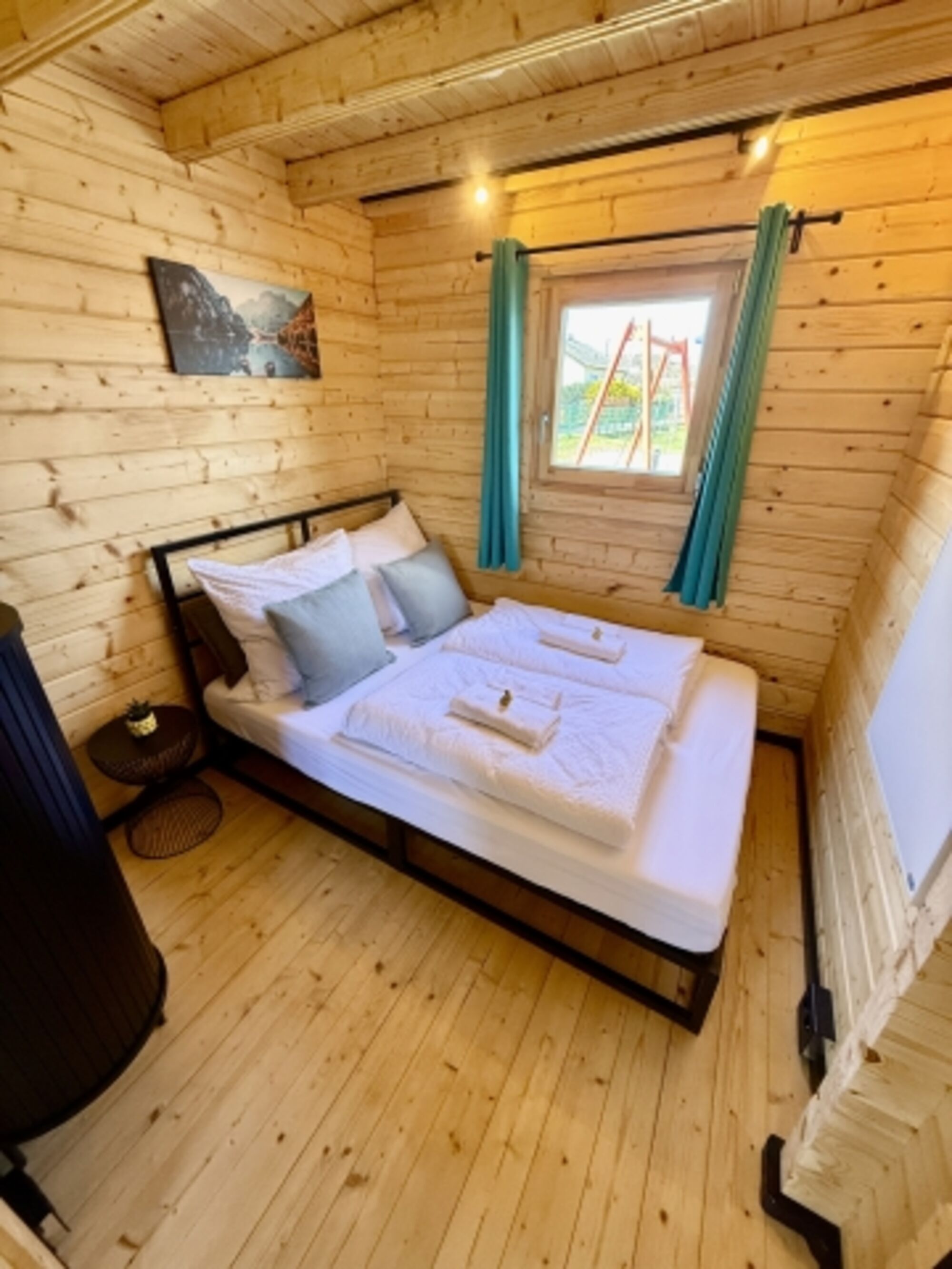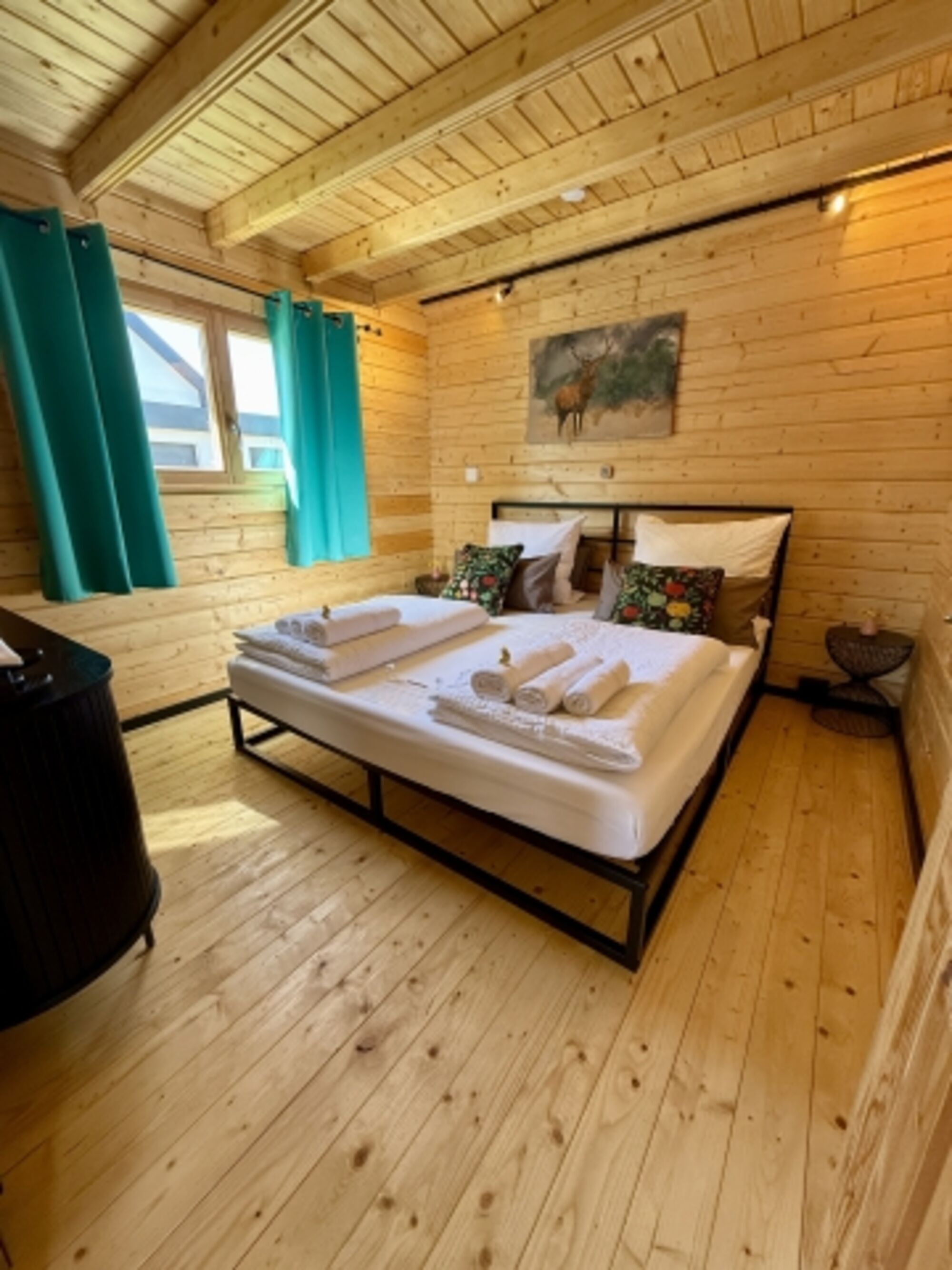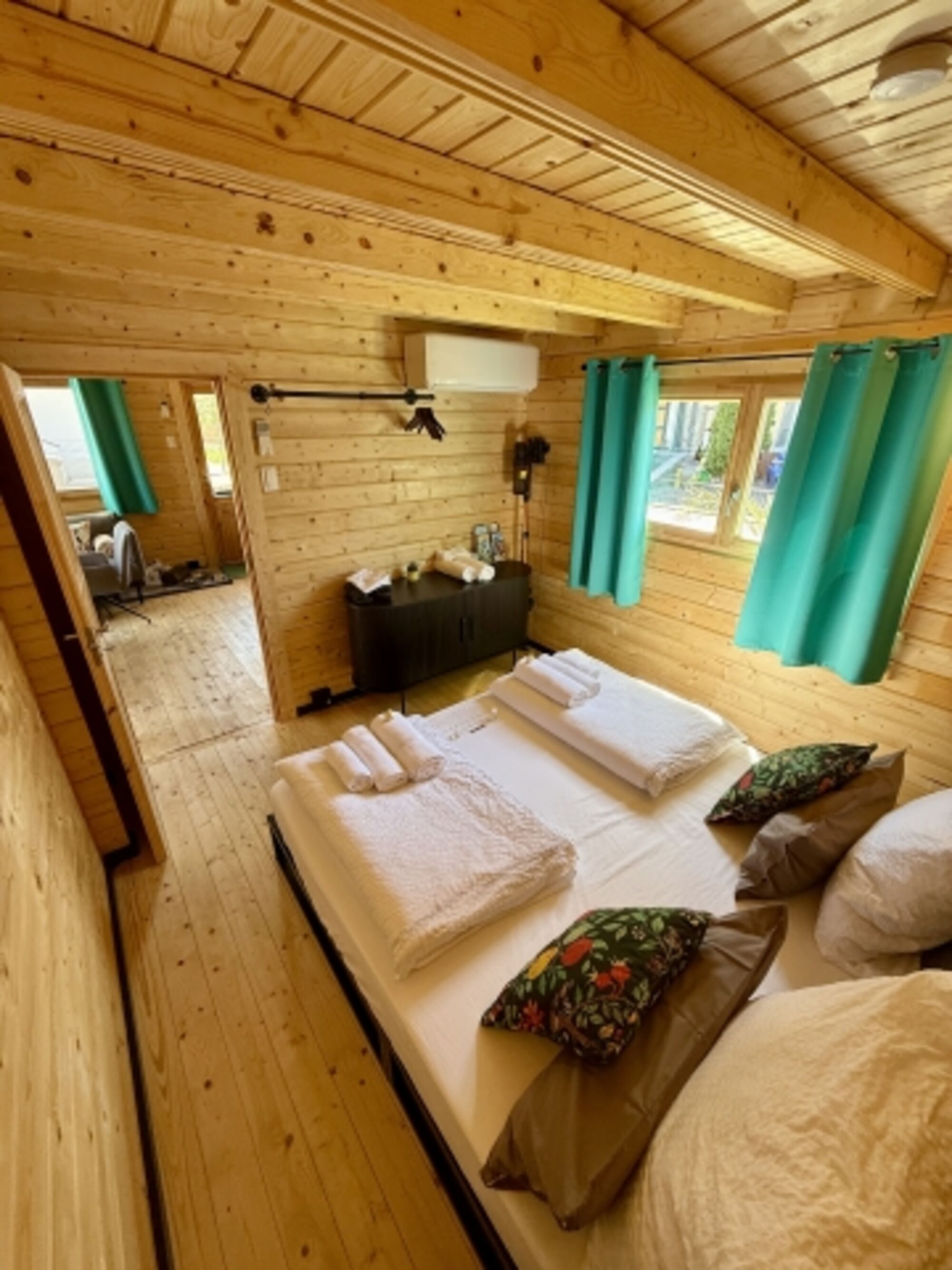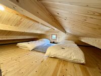 Es gibt ein Schlafzimmer (klimatisiert) mit einem Kingsize-Doppelbett, ein Schlafzimmer mit einem Queensize-Doppelbett sowie einen Schlafboden (sehr geringe Raumhöhe, kein Stehen möglich) mit zwei Einzelbetten. Achtung: Für Kinder unter 8 Jahren ist der Schlafboden aufgrund der steilen Treppe nicht geeignet!