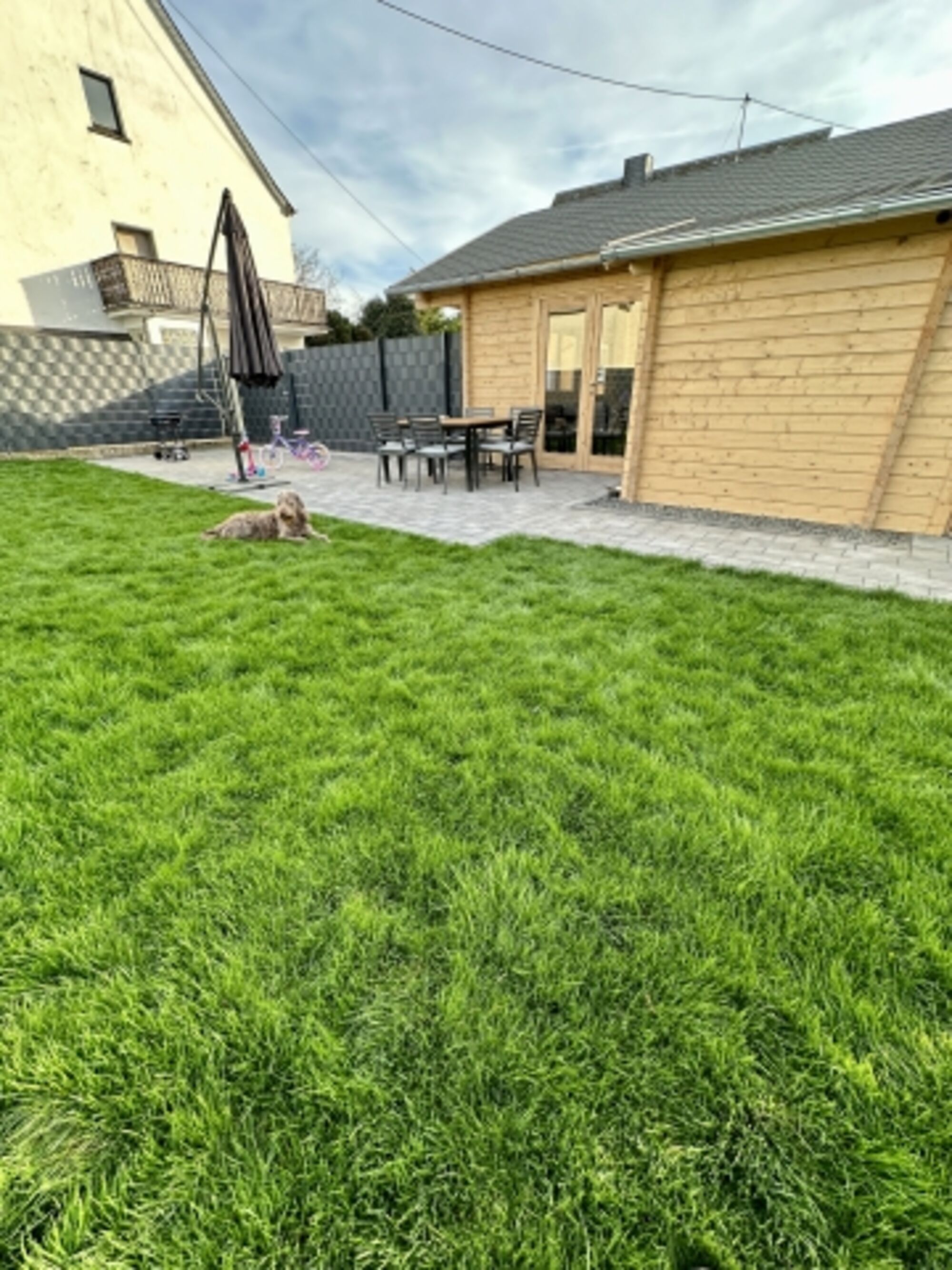Der Garten (ca. 320m²) ist komplett kinder- und haustiersicher eingezäunt und auf der Terrasse gibt es einen ausziehbaren Tisch mit 6 Stühlen.