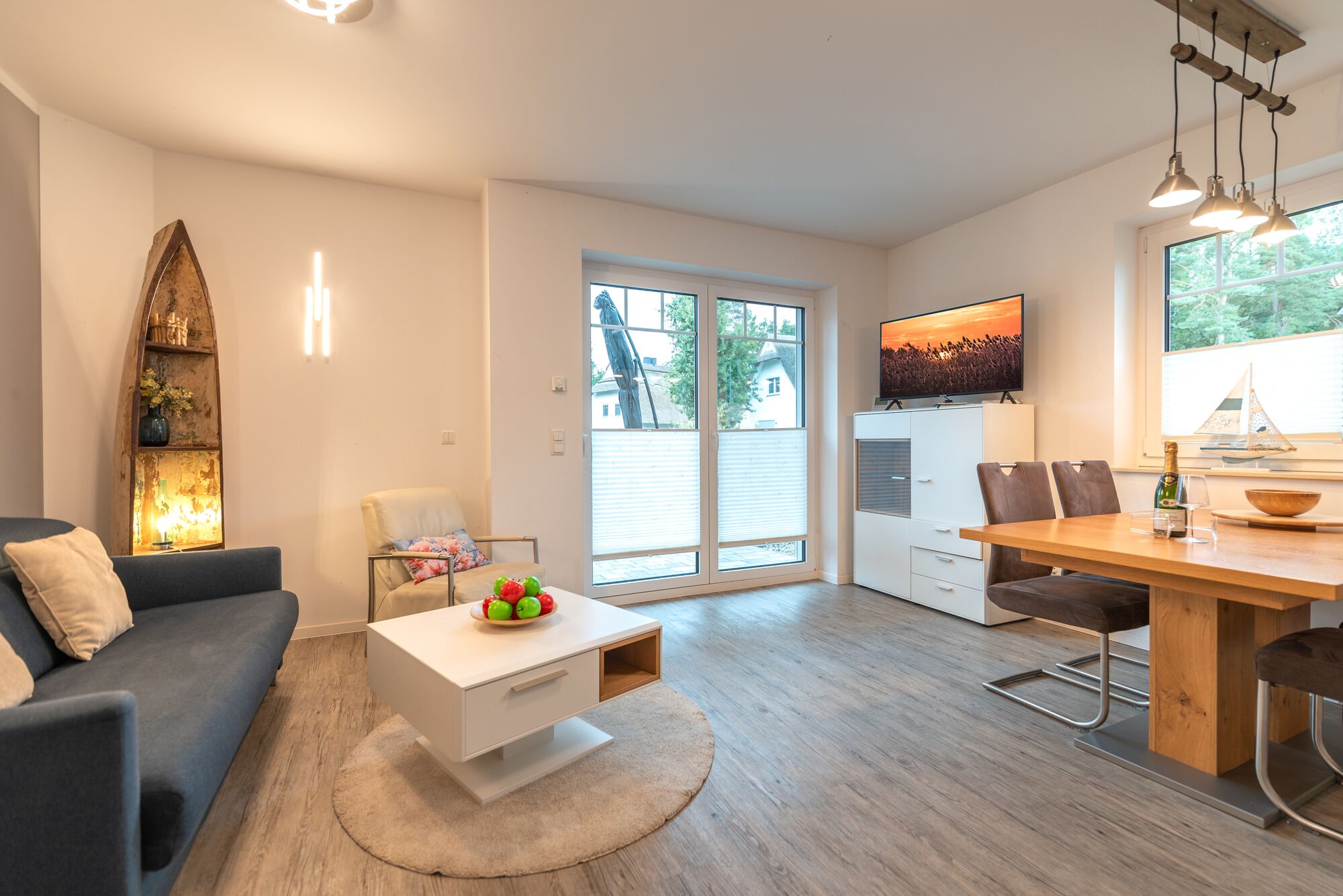 Willkommen im Ferienhaus Käpt’n Blaubär, einer modernen Haushälfte über zwei Etagen im idyllischen Fischerdorf Zirchow. Mit rund 70 m² Wohnfläche bietet das Haus Platz für bis zu 6 Personen und ein Baby – perfekt für Familien oder Paare, die eine erholsame Auszeit nahe der Natur suchen.