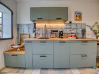 Induktionsherd, Kühlschrank mit Gefrierfach, Gefrierschrank, Nespresso-Automat, Korkenzieher / Flaschenöffner, Geschirrhandtücher, Mülltüten, Essplatz in der Küche, TV in der Küche