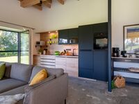 Küche voll ausgestattet: Kühlschrank mit Gefrierfach, Kaffeemaschine, Geschirrspüler, Mikrowelle
