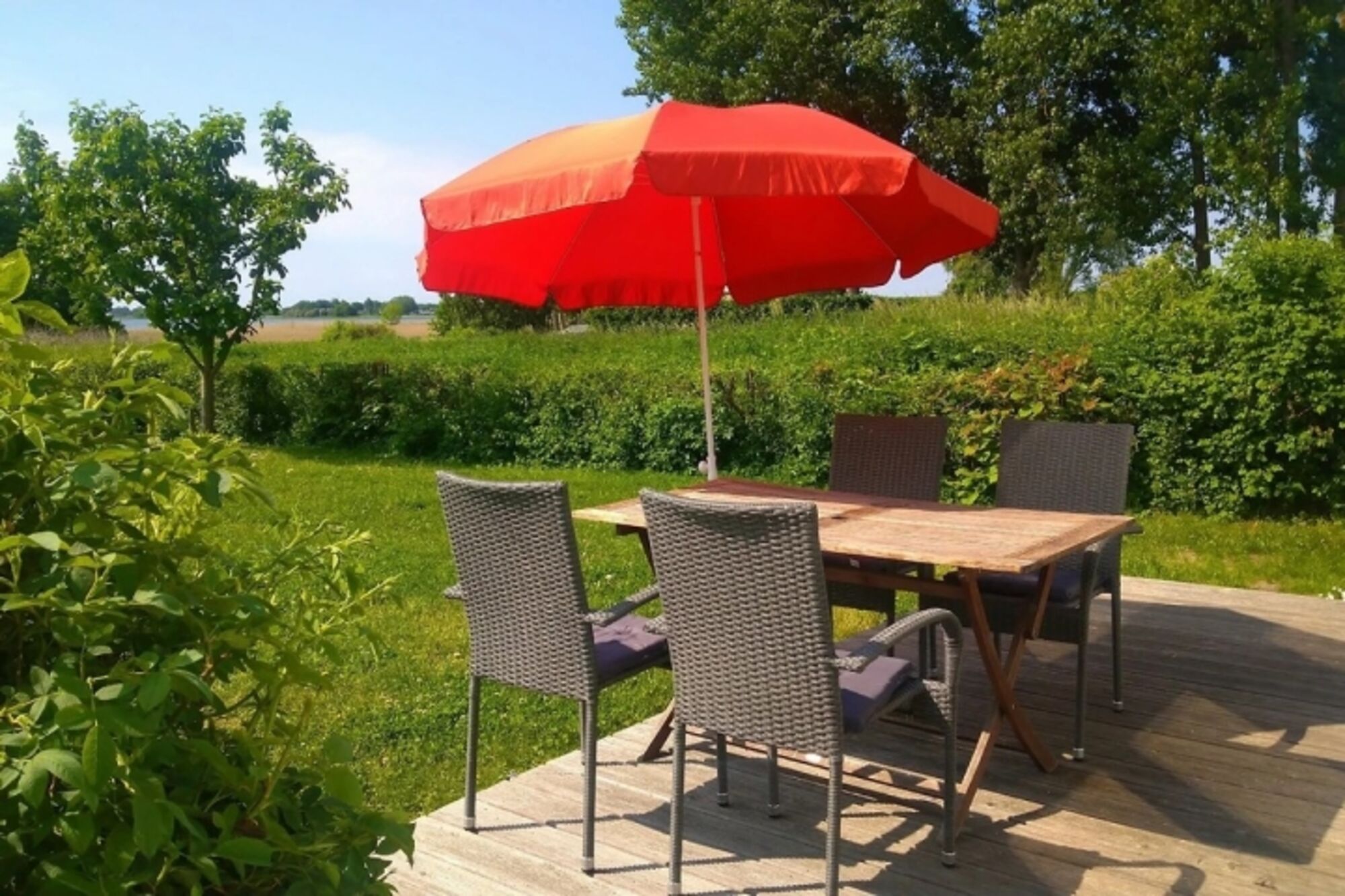 Ferienhaus Boddenidyll, Garten, Boddenblick, Rügen