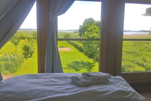 Eines der Schlafzimmer bietet einen herrlichen Ausblick auf den Bodden.