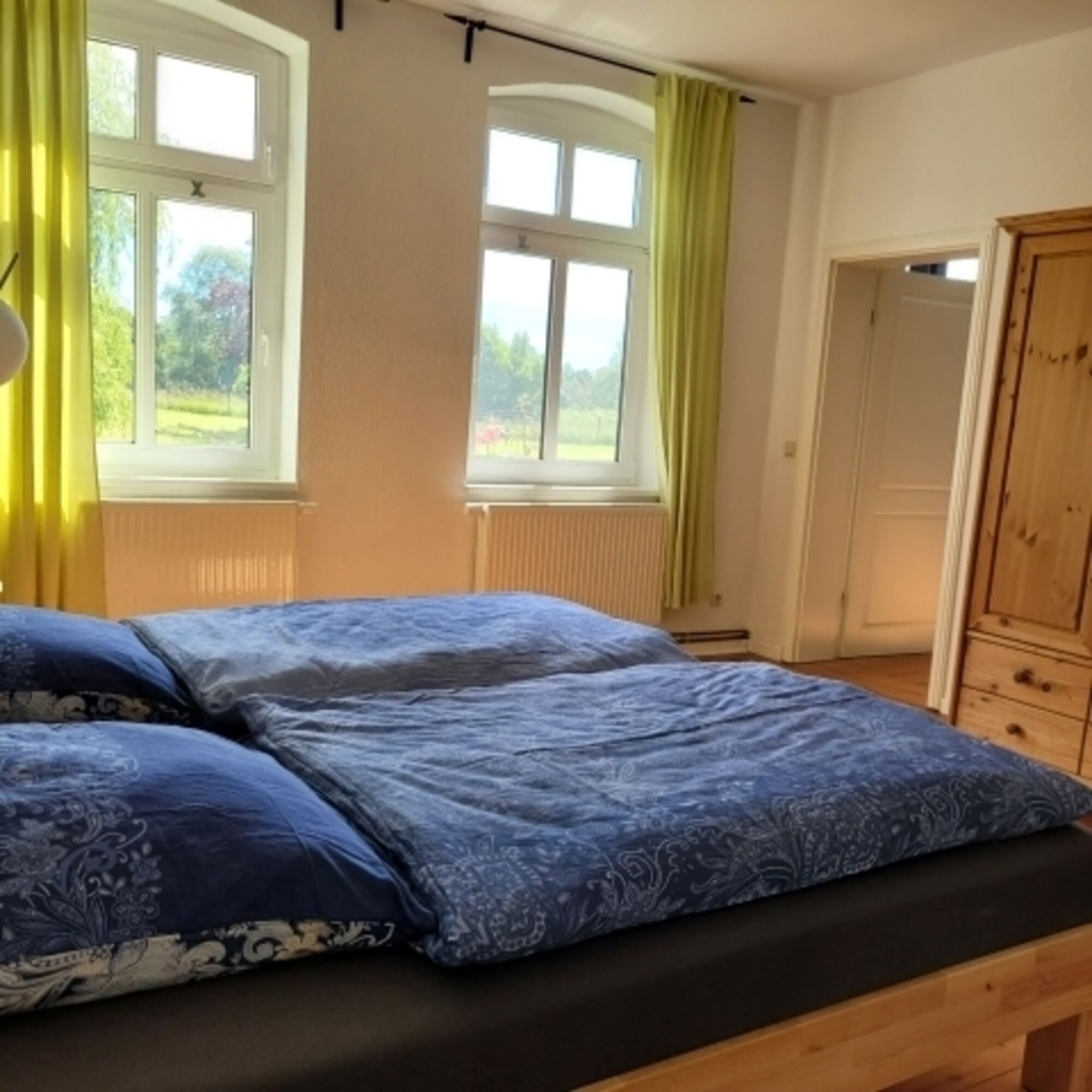 Doppelbett 2,00 x 2,00m, Leselampe am Bett, Fliegengitter