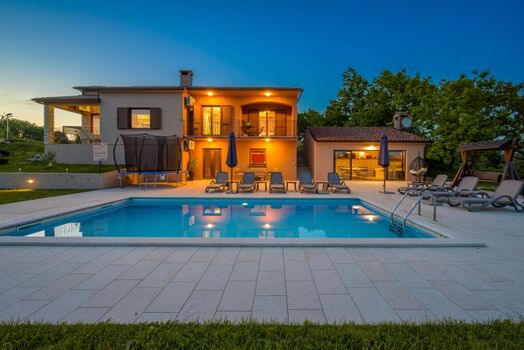 Die Villa Mirna bietet Platz für bis zu 7 Personen und verfügt über einen privaten Pool, eine Sauna und ein Fitnessstudio, die einen erstklassigen Aufenthalt mit herrlichem Blick auf die Natur ermöglichen. Für zusätzlichen Spaß verfügt die Villa über Tischtennis, einen Kinderspielplatz und ein Trampolin, was die ganze Familie begeistern wird. Die Kombination aus modernem Komfort und natürlicher Schönheit wird durch vollständig ausgestattete Räume ergänzt, die einen unvergesslichen Aufenthalt garantieren.