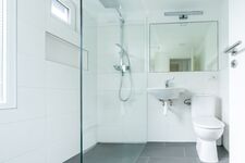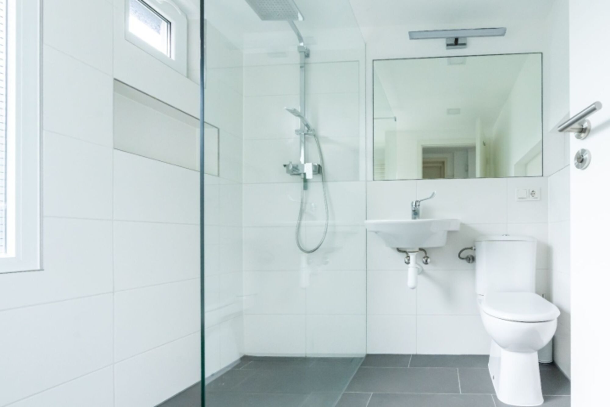 Waschbecken, Regendusche, Spiegel