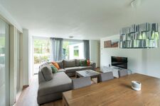 Die Sitzecke im Wohnzimmer verfügt über eine gemütliche Eckcouch. Es gibt Satelliten-TV mit vielen deutschen Sendern. Vom Wohnzimmer aus betreten sie die große Terrasse mit einer Gartengruppe für 6 Personen. Hier können Sie den Tag mit einem Frühstück beginnen und mit einem guten Glas Wein am Grill abschließen